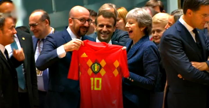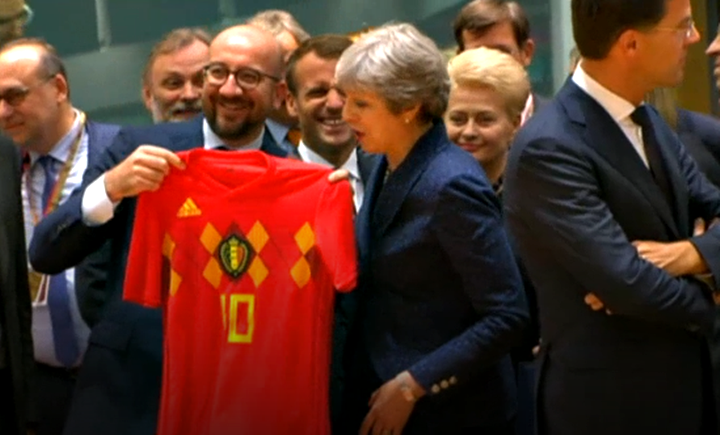 Μία φανέλα της εθνικής ομάδα του Βελγίου, χάρισε στην Βρετανίδα πρωθυπουργό, Τερέζα Μέι, ο Βέλγος ομόλογός της Σαρλ Μισέλ στο Ευρωπαϊκό Συμβούλιο, λίγες ώρες πριν από την αναμέτρηση των δύο ομάδων, που ολοκληρώθηκε με νίκη των «κόκκινων διαβόλων».