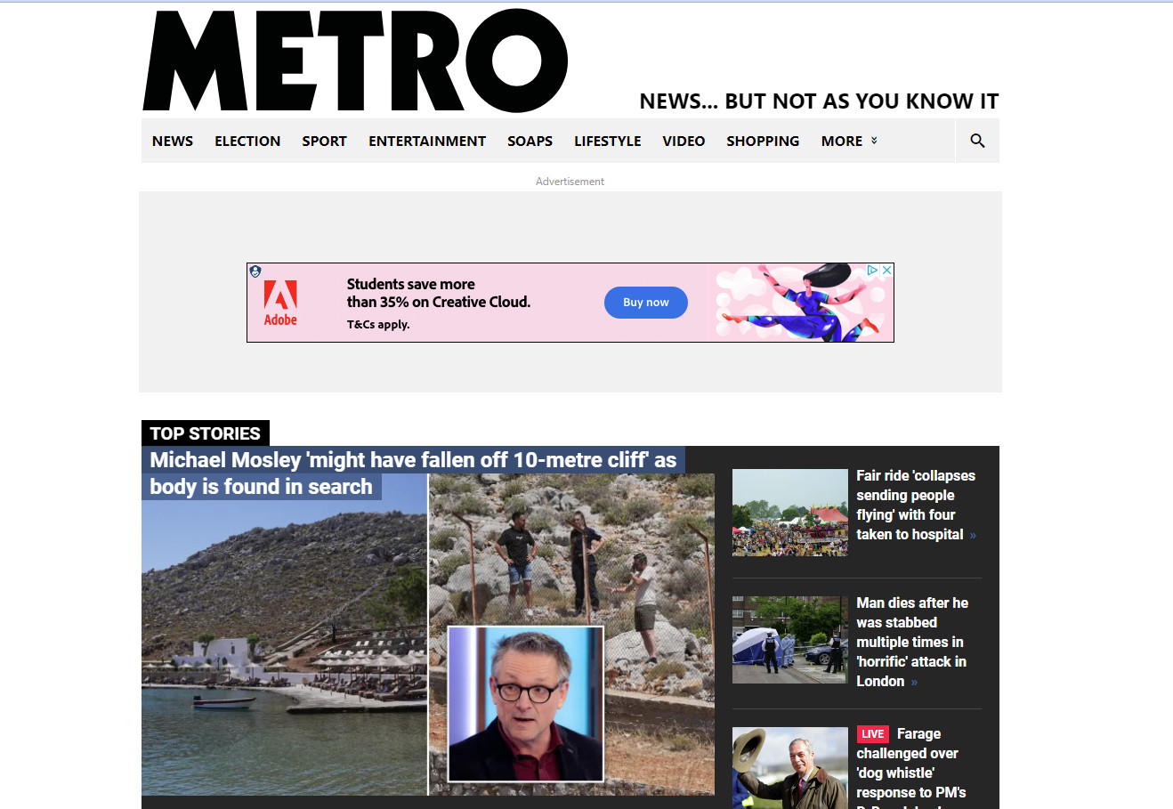 Τέλος, ο τίτλος του δημοσιεύματος της Metro γράφει ότι «Ο Μάικλ Μόσλεϊ «μπορεί να έπεσε από γκρεμό 10 μέτρων», καθώς βρέθηκε το πτώμα σε έρευνα».