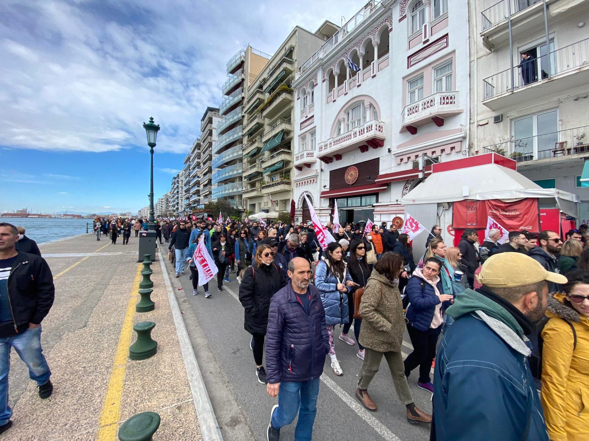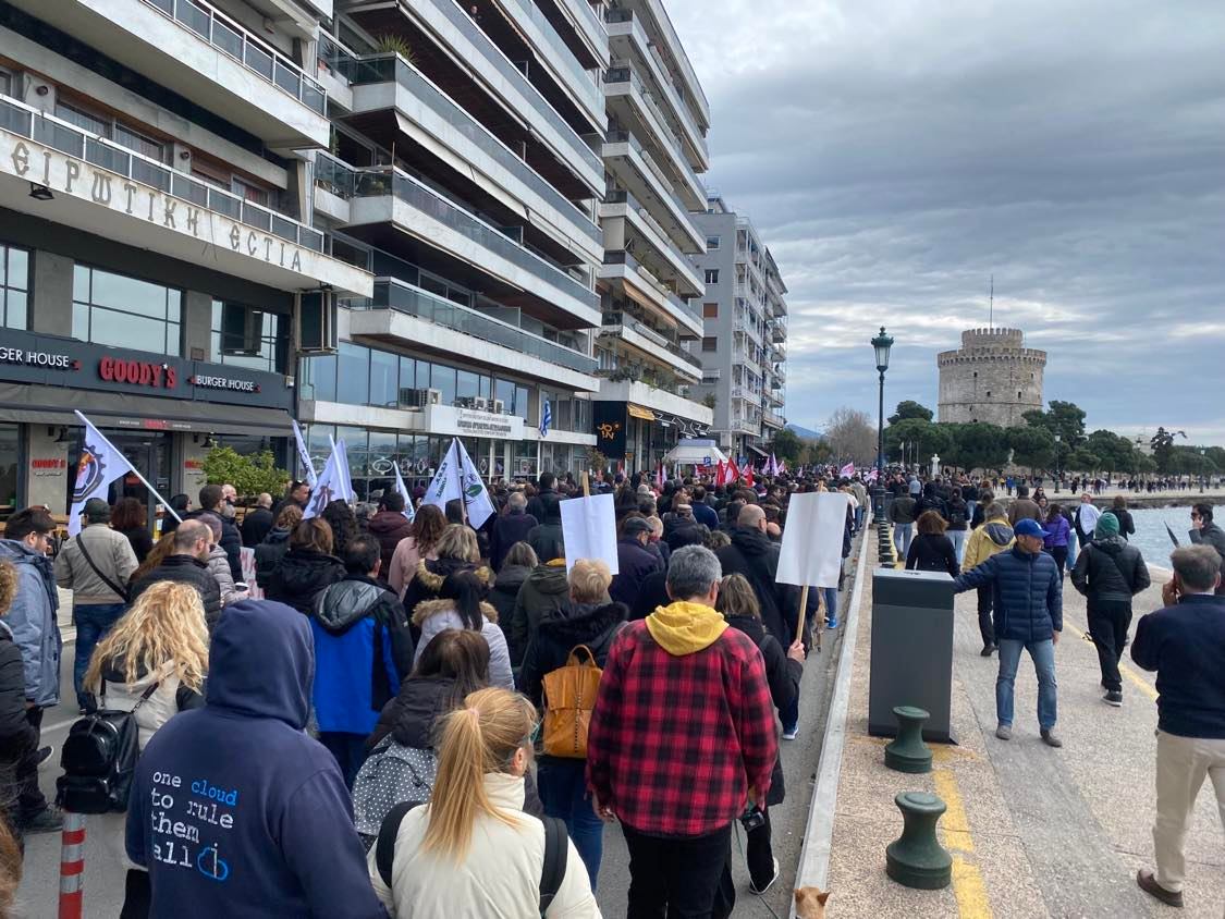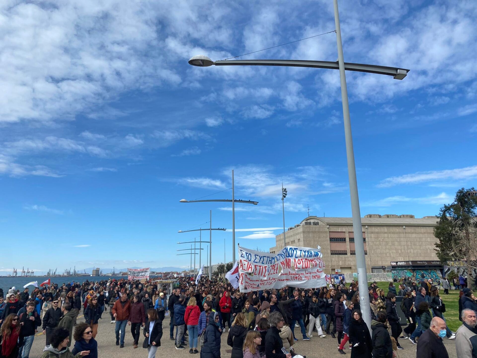 Οι συμμετέχοντες στην πορεία βρίσκονται αυτήν την ώρα στην παραλιακή, στη λεωφόρο Νίκης, και κατευθύνονται προς το Λευκό Πύργο.