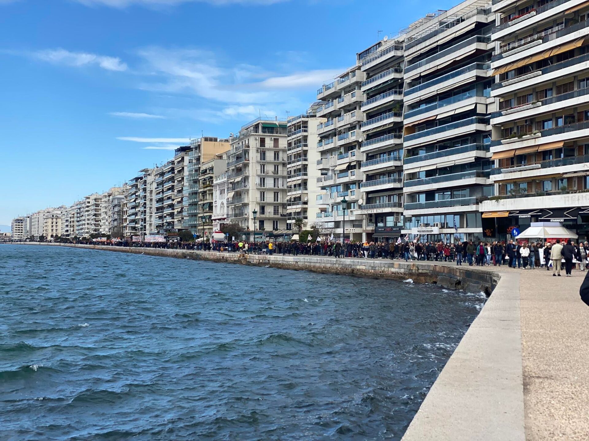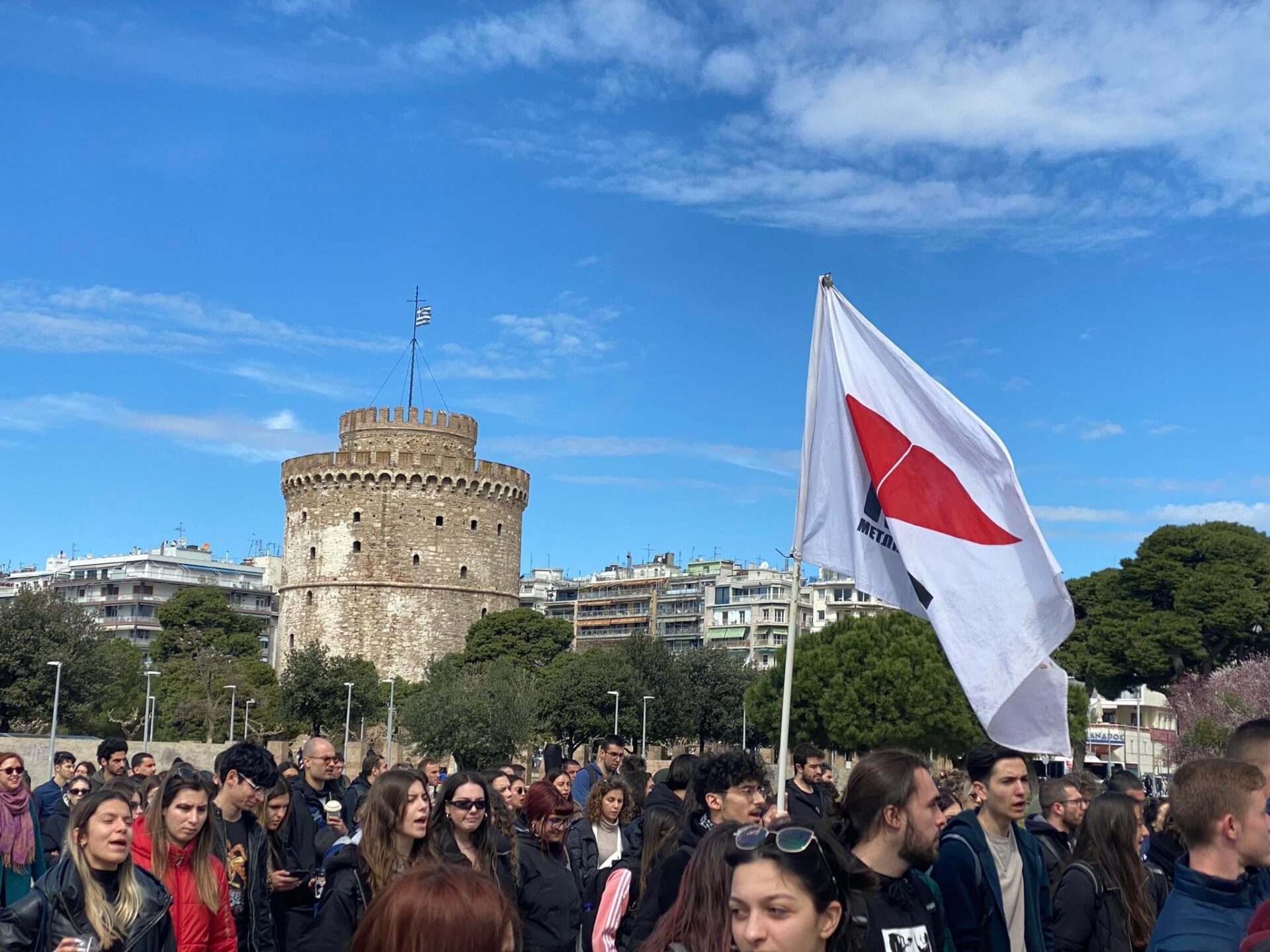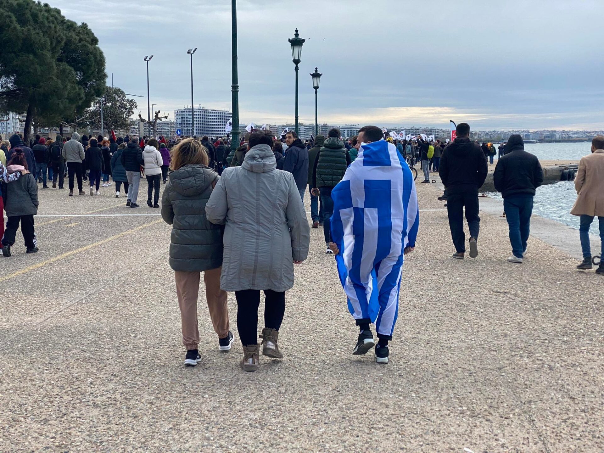 Οι συμμετέχοντες στην πορεία βρίσκονται αυτήν την ώρα στην παραλιακή, στη λεωφόρο Νίκης, και κατευθύνονται προς το Λευκό Πύργο.