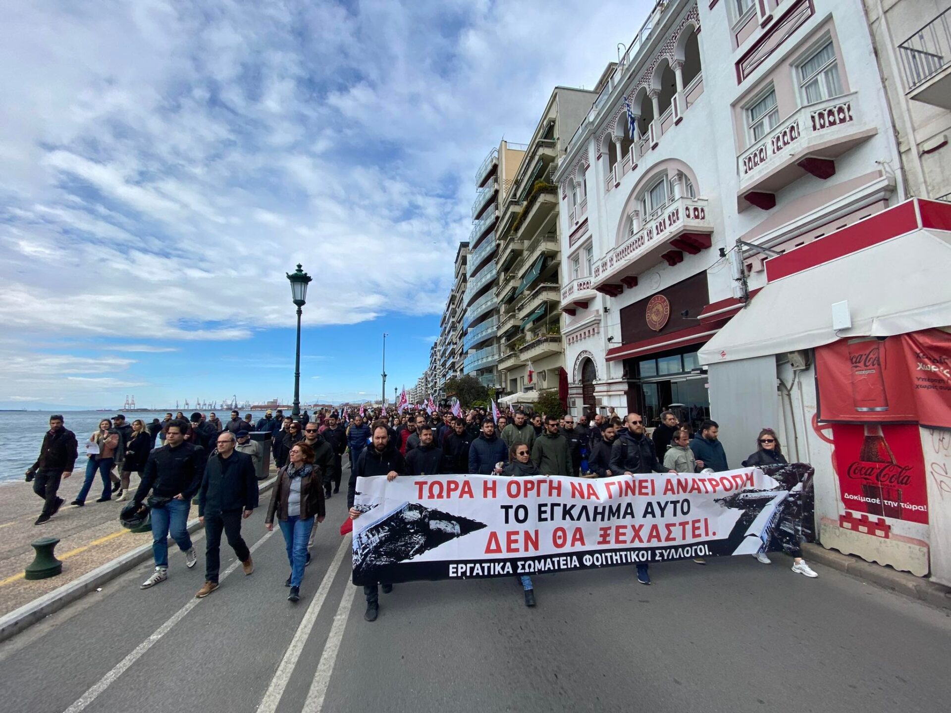 Ανταποκρινόμενη στο κάλεσμα των φοιτητικών συλλόγων και των εργατικών σωματείων, για μια ακόμα μέρα, αυτή τη φορά Κυριακή, οι Θεσσαλονικείς κατέβηκαν στο γνωστό σημείο συνάντησης της Εγνατίας, στο άγαλμα του Βενιζέλου για να διατρανώσουν τη φωνή τους με την απαίτηση να αποδοθούν ευθύνες για το έγκλημα στα Τέμπη και να εξυγιανθούν οι συγκοινωνίες στην Ελλάδα ώστε να γίνουν ασφαλείς.