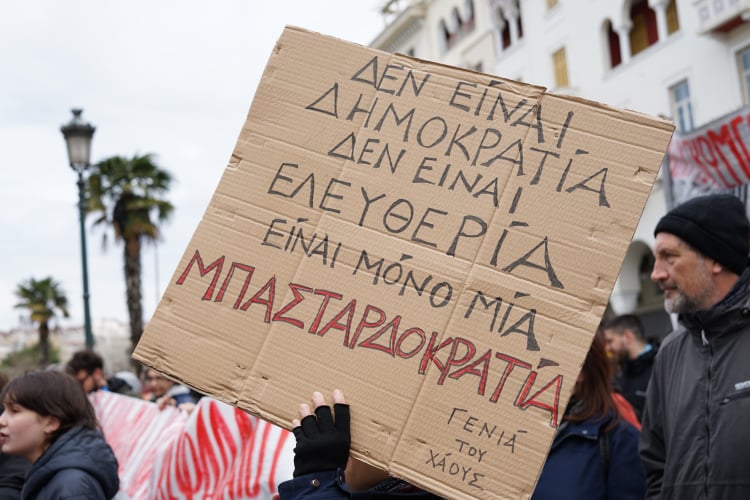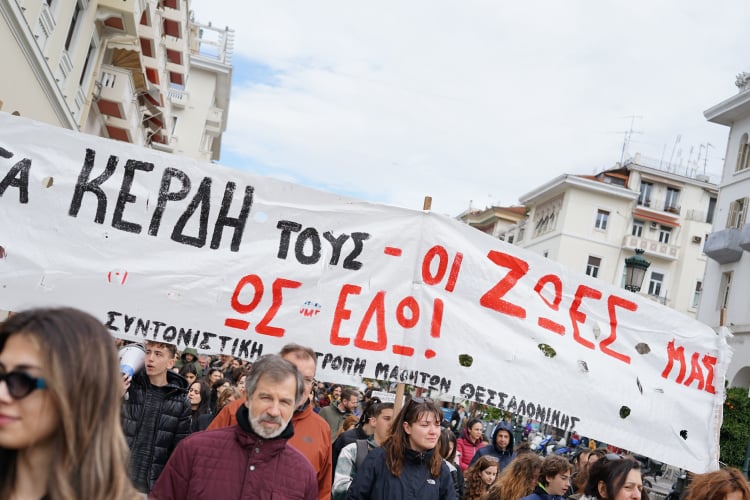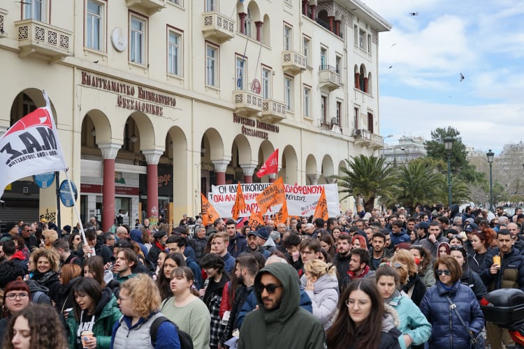 Ανταποκρινόμενη στο κάλεσμα των φοιτητικών συλλόγων και των εργατικών σωματείων πραγματοποιούν μεγάλο συλλαλητήριο.