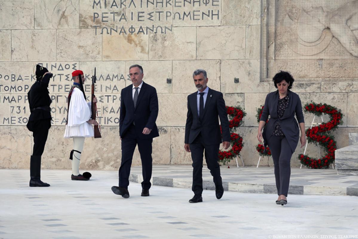 Το πρωί, στην Ειδική συνεδρίαση της Ολομέλειας της Βουλής, εκ μέρους του Προεδρείου της Εθνικής Αντιπροσωπείας μίλησε ο Α΄ Αντιπρόεδρος της Βουλής κ. Νικήτας Κακλαμάνης ενώ στη συνέχεια τον λόγο πήραν βουλευτές όλων των Κοινοβουλευτικών Ομάδων. Την Κυβέρνηση εκπροσώπησε ο Αναπληρωτής Υπουργός Εξωτερικών κ. Μιλτιάδης Βαρβιτσιώτης.