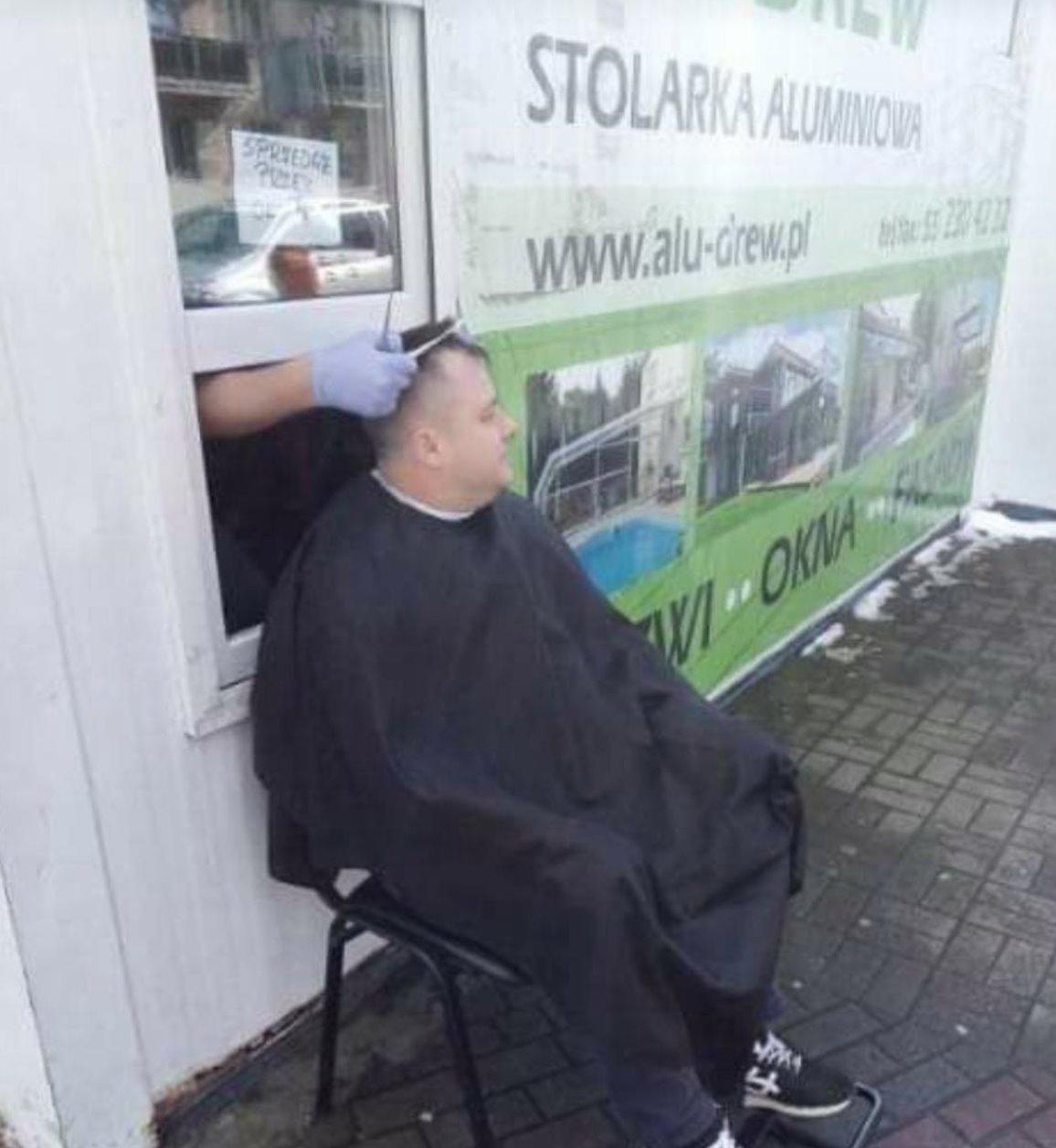 Πολωνία. Επαρχία. Τα κουρεία κλειστά. Μια πατέντα να μην έρχεται σε άμεση επαφή ο κουρέας με τον πελάτη. Το αποτέλεσμα ένα κούρεμα δια της προφυλάξεως.