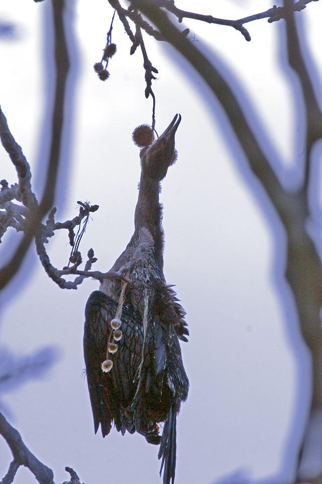 Εντοπίστηκαν νεκρά μετά το ξεπάγωμα των νερών, με κάποια απ' αυτά να κρέμονται άψυχα ακόμα και από κλαδιά δέντρων...