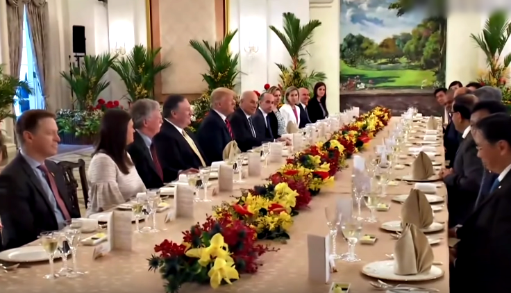 Το γεύμα ετοιμάστηκε για 15 συνδαιτυμόνες, ανάμεσά τους ο πρόεδρος των ΗΠΑ και ο ηγέτης της Βόρειας Κορέας. Από αμερικανικής πλευράς μετείχαν ο υπουργός Εξωτερικών Μάικ Πομπέο, ο σύμβουλος Εθνικής Ασφαλείας Τζον Μπόλτον, ο προσωπάρχης της αμερικανικής προεδρίας Τζον Κέλι, η εκπρόσωπος του Λευκού Οίκου Σάρα Σάντερς, ο πρεσβευτής των ΗΠΑ στις Φιλιππίνες Σουνγκ Κιμ, ο οποίος είχε μετάσχει σε μεγάλο βαθμό στις προπαρασκευαστικές συνομιλίες ενόψει της συνόδου, και ο Μάθιου Πότιντζερ, σύμβουλος για θέματα Ασίας του 45ου προέδρου. Από βορειοκορετικής πλευράς, μετείχαν ο υπουργός Εξωτερικών Ρι Γιονγκ Χο, ο υπουργός Άμυνας Νο Κουνγκ Τσολ, ο πρώην επικεφαλής της στρατιωτικής υπηρεσίας πληροφοριών Κιμ Γιονγκ Τσολ, ο αναπληρωτής υπουργός Εξωτερικών Τσο Σον Χούι, ο αντιπρόεδρος του κυβερνώντος Κόμματος Εργατών Ρι Σου Γιονγκ καθώς και δύο ακόμη υψηλόβαθμα στελέχη του κόμματος.