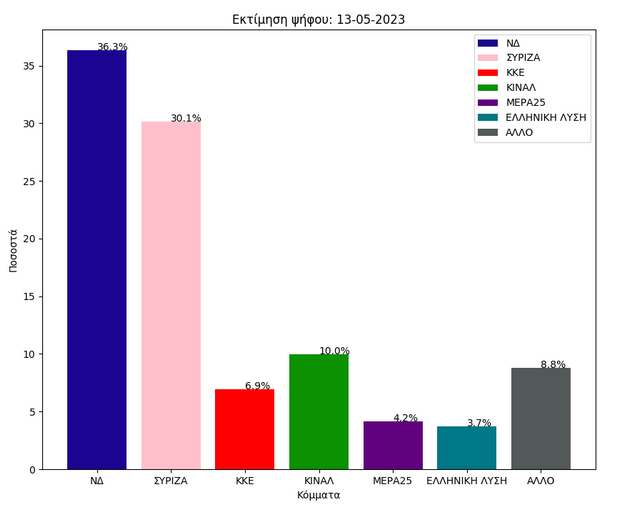 3) Δεν υπάρχει σοβαρή απόκλιση από τα αποτελέσματα των δημοσκοπήσεων, σύμφωνα με τις μέχρι τώρα αναλύσεις (Μάιος 2022-Μαίος 2023). Η απόκλιση είναι περίπου 0.5-1% για τα μικρά και τα μεγάλα κόμματα αντίστοιχα.
