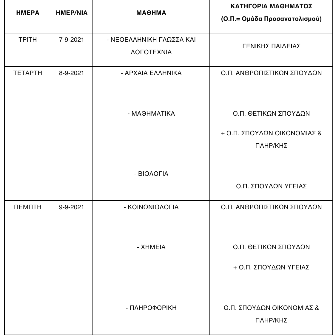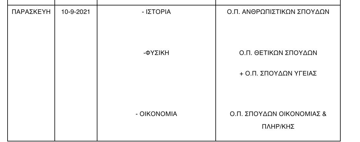 Γ. Η Υγειονομική Εξέταση και Πρακτική Δοκιμασία (αγωνίσματα) των υποψηφίων των Επαναληπτικών Εξετάσεων ΓΕΛ και ΕΠΑΛ από όλη την Ελλάδα, για εισαγωγή στα Τμήματα Επιστήμης Φυσικής Αγωγής και Αθλητισμού (ΤΕΦΑΑ) ακαδ. έτους 2021-22 θα διεξαχθεί το διάστημα από τη Δευτέρα 13-9-2021 μέχρι και τη Δευτέρα 20-9-2021. Θα ακολουθήσει δελτίο τύπου με τα απαιτούμενα δικαιολογητικά και τις έδρες των Δ/νσεων, όπου θα λειτουργήσουν οι αντίστοιχες επιτροπές.