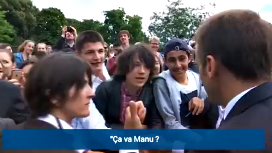 Ο πρόεδρος της Γαλλίας Εμανουέλ Μακρόν επέπληξε έναν μικρό Γάλλο χθες, αφού ο έφηβος απευθύνθηκε στον επικεφαλής του γαλλικού κράτους σε ανεπίσημο ύφος, αποκαλώντας τον «Μανού», ενώ τραγούδησε τον ύμνο του Σοσιαλιστικού Κόμματος μπροστά του.