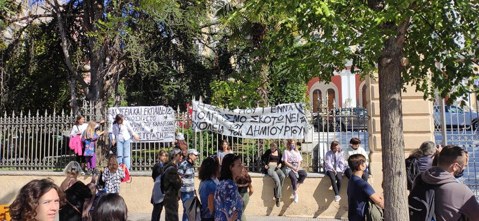 Aιφνιδιαστική συγκέντρωση μαθητών πραγματοποιείται αυτή την ώρα έξω από το ΥΜΑΘ. Περίπου 120 μαθητές του καλλιτεχνικού και του μουσικού Γυμνασίου – Λυκείου Θεσσαλονίκης βρίσκονται έξω από το Υπουργείου Μακεδονίας-Θράκης με το σύνθημα “μέσα σε έναν κόσμο γεμάτο και κακό, εμείς θα τον γεμίσουμε με πολιτισμό”, τραγουδούν, χορεύουν και εκφράζονται κατά της υπουργού Παιδείας, Νίκης Κεραμέως.