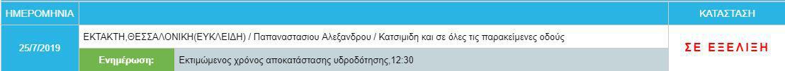 Έκτακτη διακοπή νερού βρίσκεται σε εξέλιξη αυτή την ώρα σε περιοχή του δήμου Θεσσαλονίκης.