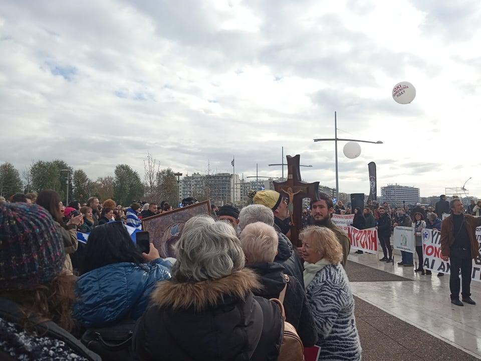 Mόλις λίγα λεπτά πριν ακούστηκε ιερέας να φωνάζει πως “με κάθε εμβόλιο γινόμαστε αποδέκτες των δολοφονιών αθώων εμβρύων”.
