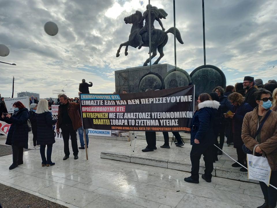 “Eνημερώνουμε ότι είμαστε εδώ και δεν περισσεύουμε. Προειδοποιούμε ότι η κυβέρνηση με τις αναστολές υγειονομικών βλάπτει σοβαρά το σύστημα υγείας”.
