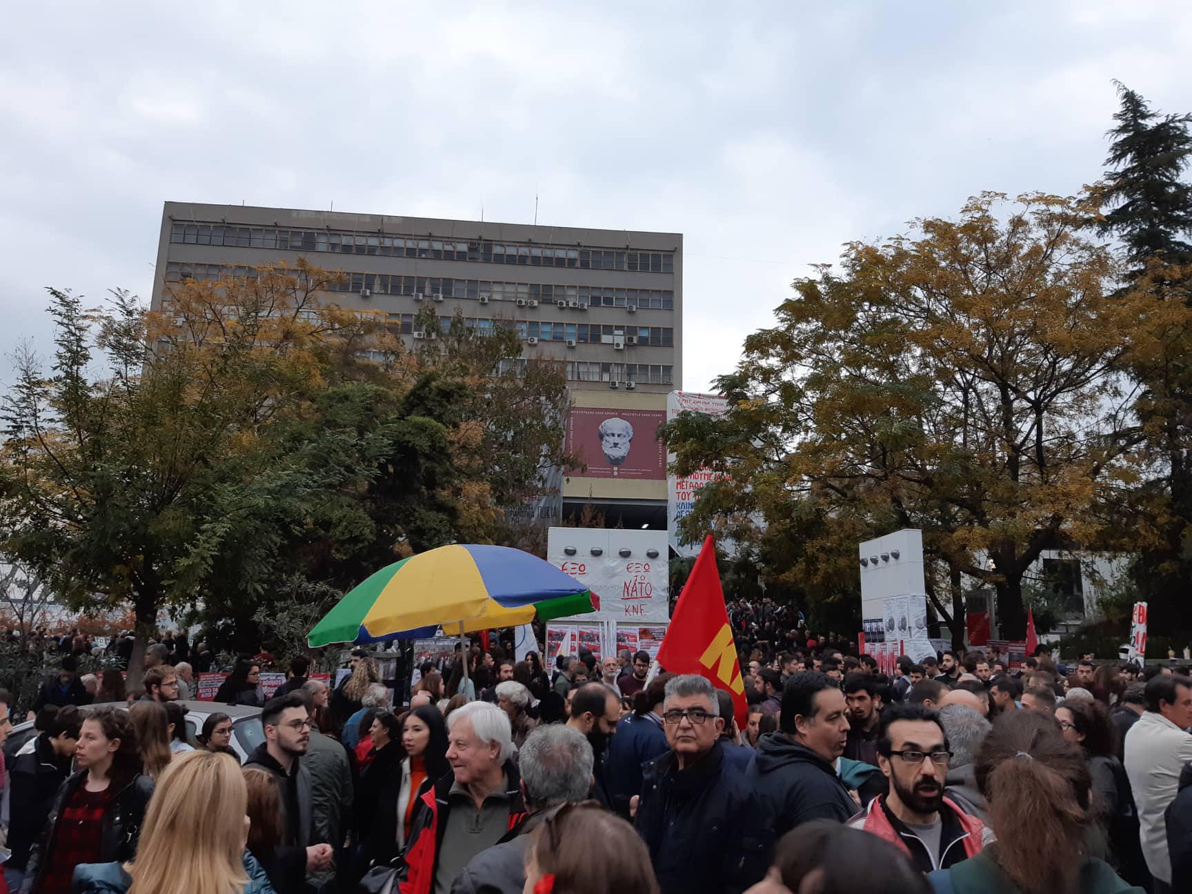 Όλα έτοιμα για να ξεκινήσει η πορεία στο κέντρο της πόλης της Θεσσαλονίκης. Σε πολλά σημεία υπάρχουν κλούβες και πυροσβεστικά οχήματα. Κλειστοί οι δρόμοι από αυτή τη στιγμή στο κέντρο.