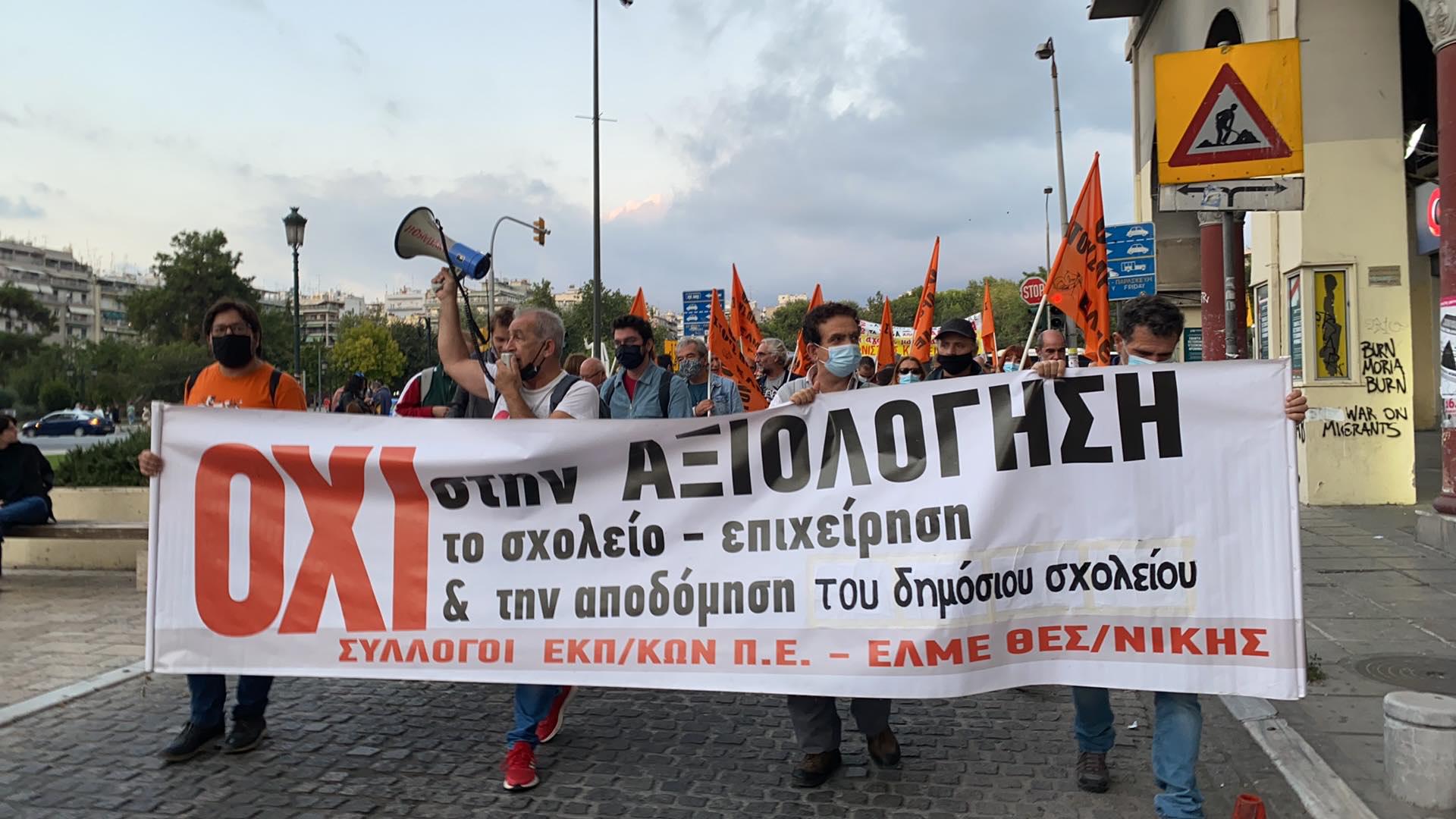 Οι εκπαιδευτικοί μετά την ολοκλήρωση της συγκέντρωσης, προχώρησαν σε πορεία στο κέντρο της πόλης και μέσω της Αριστοτέλους, της Τσιμισκή και της Ι. Δραγούμη κατευθύνθηκαν προς το ΥΜΑΘ.