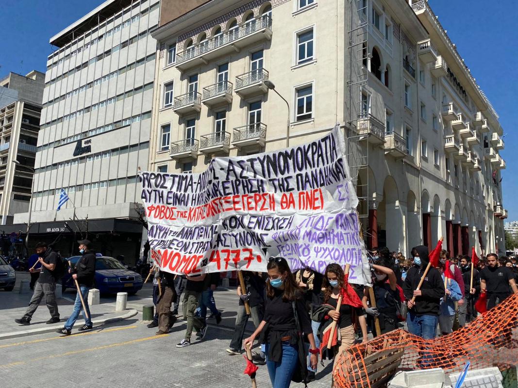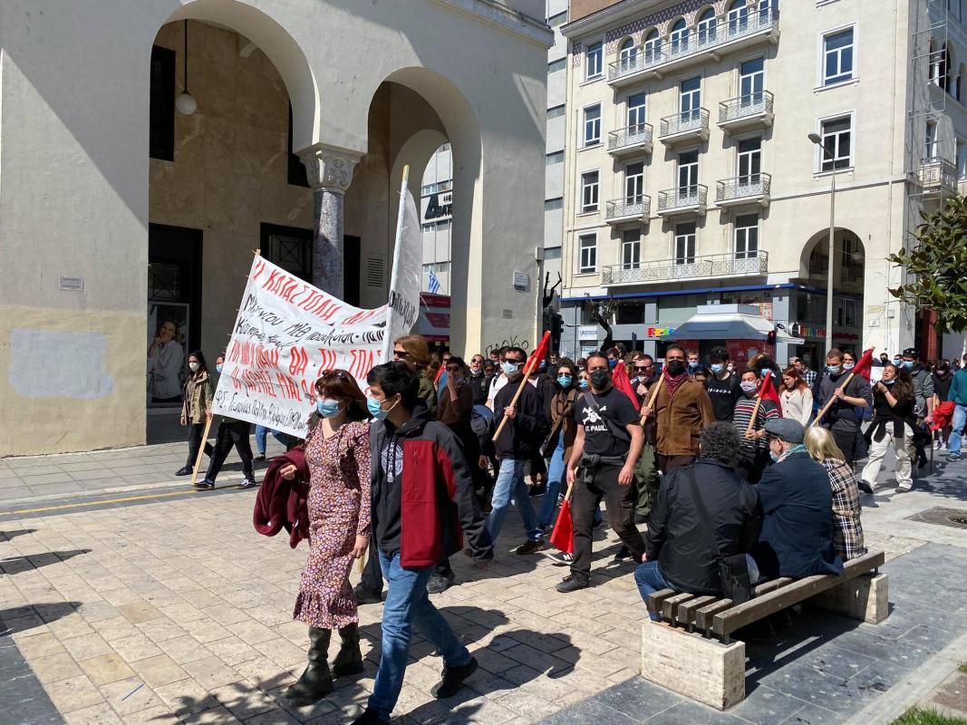 Πορεία στο κέντρο Θεσσαλονίκης πραγματοποιείται αυτή την ώρα κατά της καταστολής από αριστερές συλλογικότητες, μέλη της κοινότητας ΛΟΑΤΚΙ, άτομα του ευρύτερου αντιεξουσιαστικού χώρου καθώς και μέλη της Πρωτοβουλίας Εργαζομένων – φοιτητών- συνταξιούχων για τις αστικές συγκοινωνίες.
