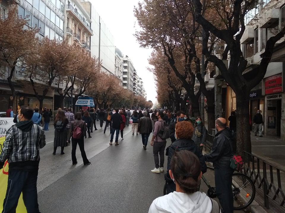 Η πορεία ξεκίνησε από την Αγίας Σοφίας και κατευθύνεται προς τα δυτικά μέσω της οδού Τσιμισκή. Αυτή την ώρα έχει ακινητοποιηθεί στη συμβολή των οδών Τσιμισκή και Καρόλου Ντηλ, όπου σε εκείνο το σημείο, έχουν παραταχθεί δυνάμεις της αστυνομίας, συγκεκριμένα άνδρες των ΜΑΤ και αστυνομικοί των ομάδων Ζ και ΔΙΑΣ.