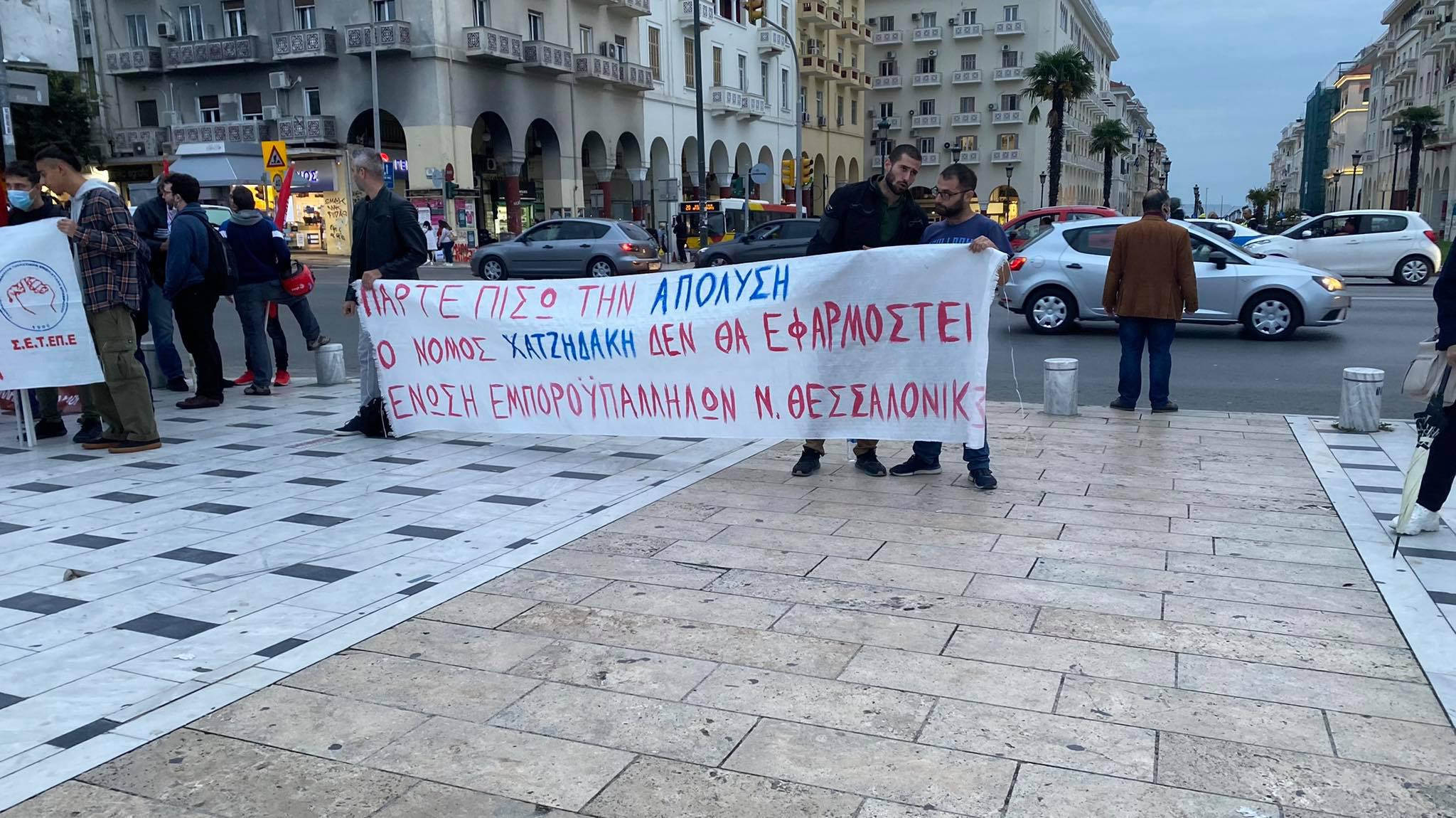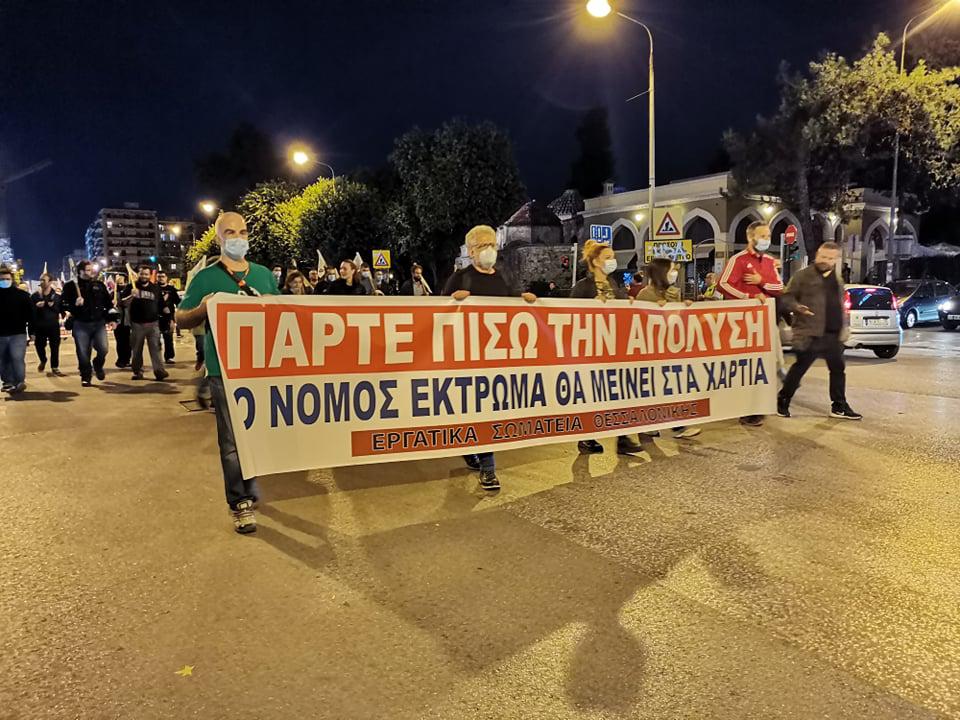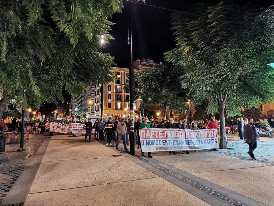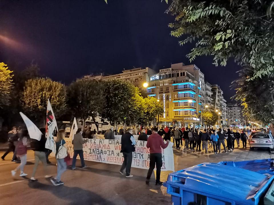 Έχει ξεκινήσει πορεία στους κεντρικούς δρόμους της πόλης και το ρεύμα της Εγνατίας προς δυτικά έχει κλείσει. Η πορεία μέσω της Εγνατίας και της Αγίας Σοφίας κατευθύνεται προς την Τσιμισκή με κατάληξη και πάλι το άγαλμα Βενιζέλου.