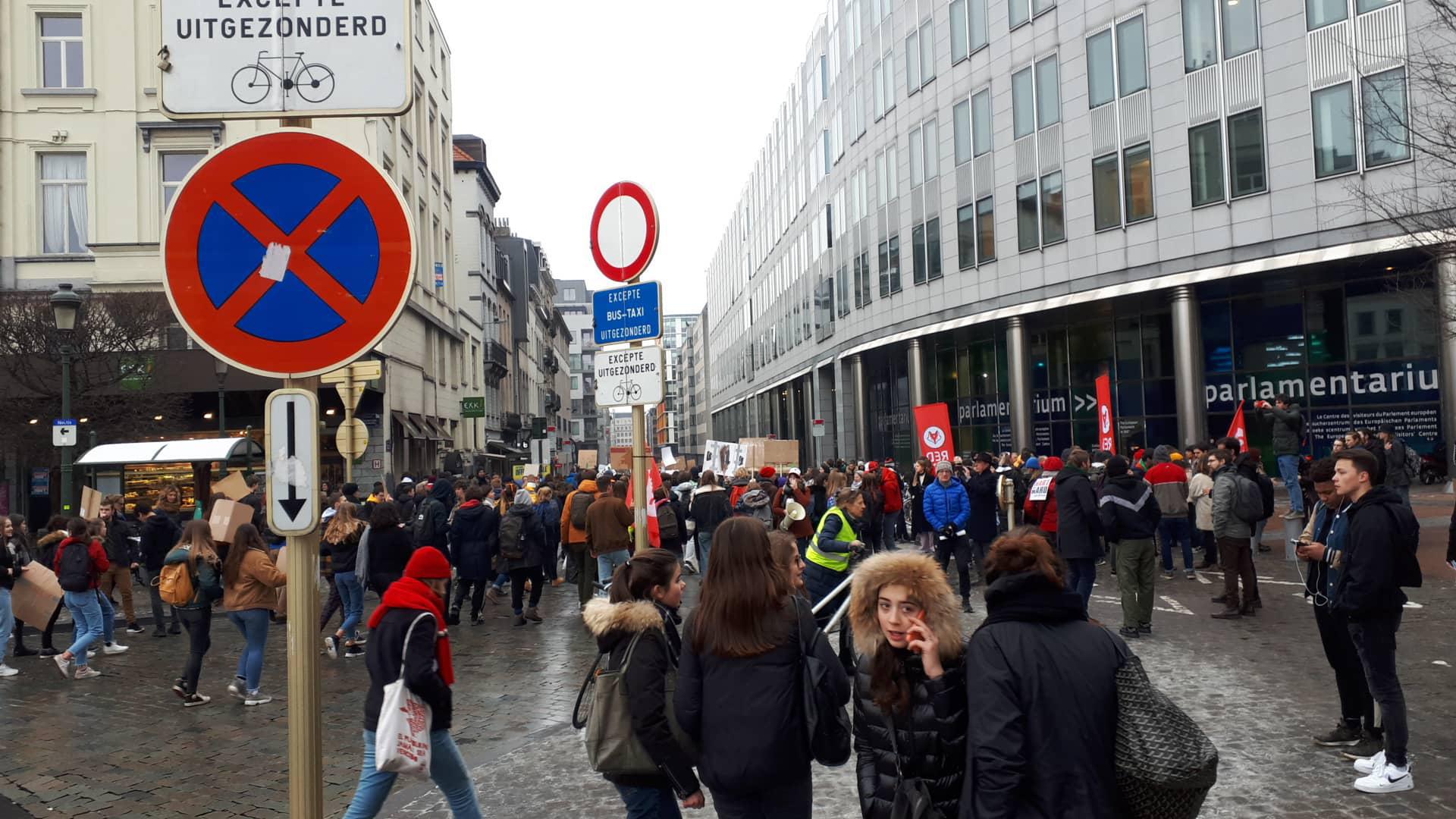 Συμβαίνει αυτή την ώρα στις Βρυξέλλες: Μια ειρηνική διαδήλωση νέων για την κλιματική αλλαγή. Χωρίς την παρουσία της αστυνομίας. Με παλμό και ζωντάνια.