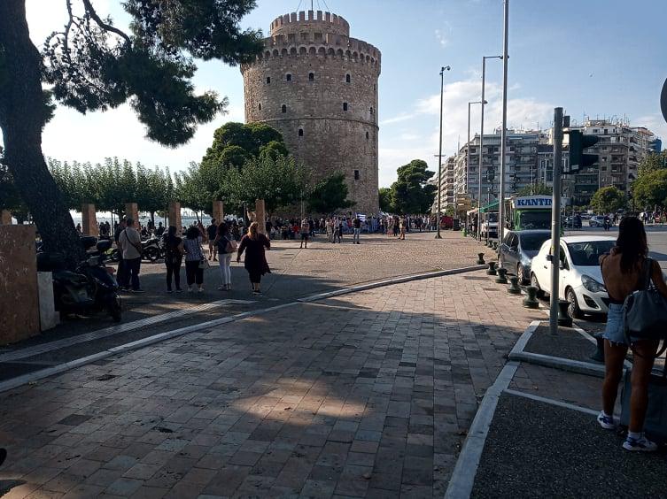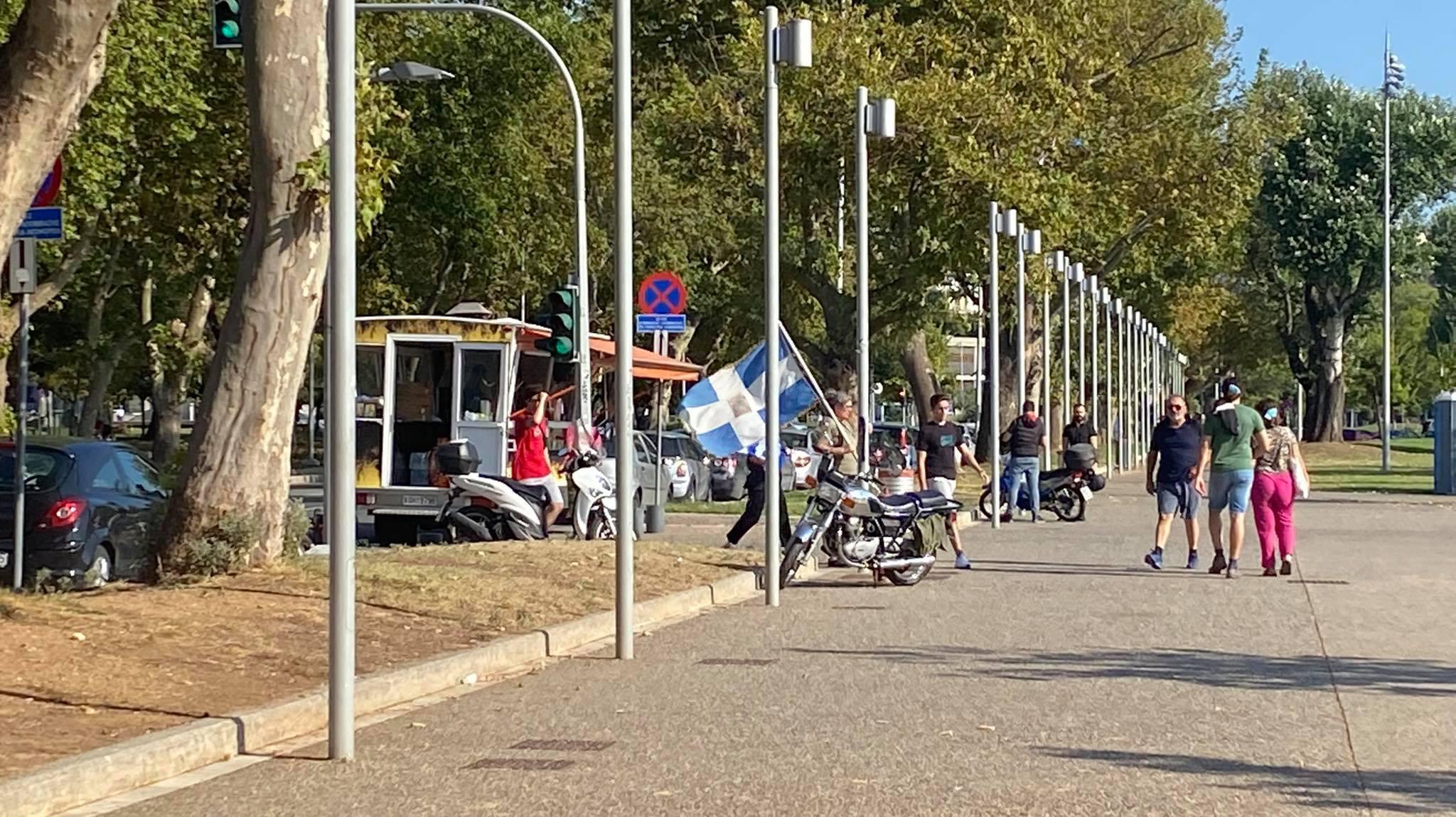 Στο σημείο έχει συγκεντρωθεί πλήθος κόσμου με ελληνικές σημαίες και πανό, ενώ υπάρχουν προστριβές με τους τροχονόμους στον Λευκό Πύργο. Οι διαδηλωτές φωνάζουν συνθήματα κατά των δημοσιογράφων και της Κυβέρνησης.