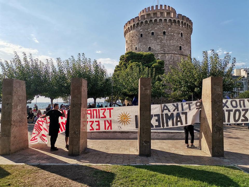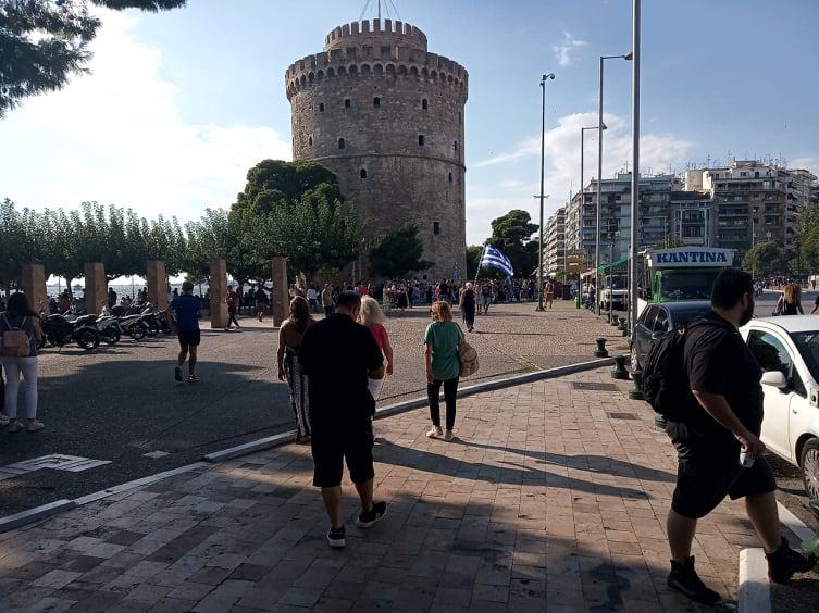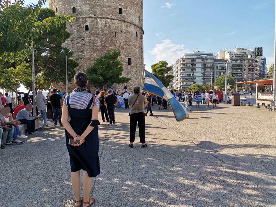 Συγκέντρωση διαμαρτυρίας πραγματοποιείται από πολίτες αυτή την ώρα στον Λευκό Πύργο κατά του υποχρεωτικού εμβολιασμού.