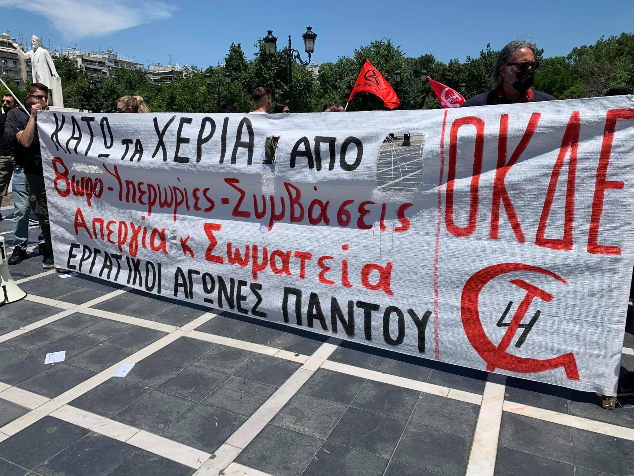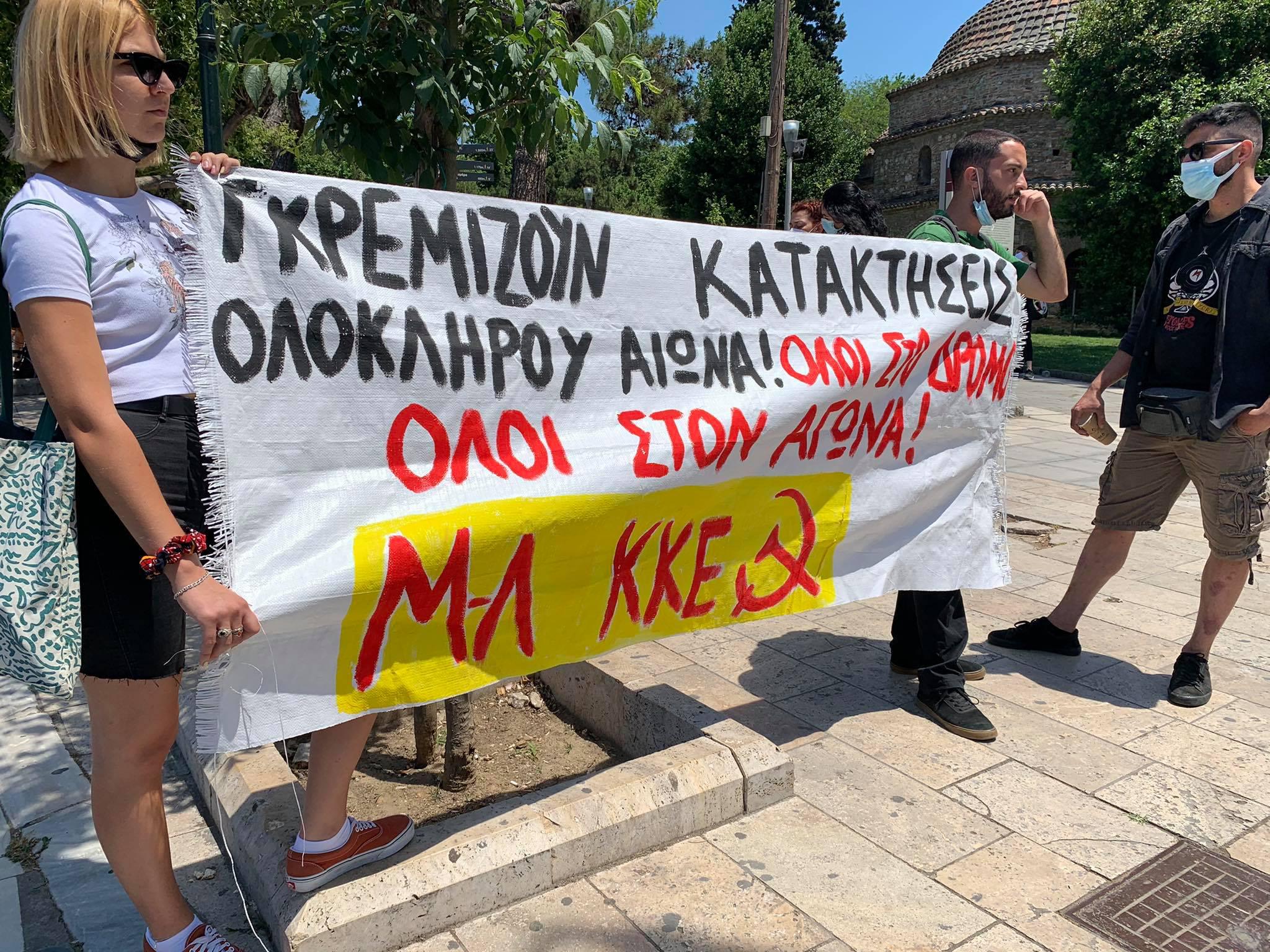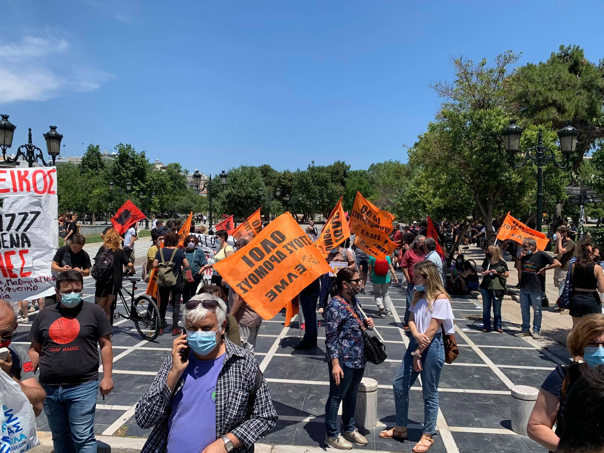 Συγκέντρωση διαμαρτυρίας πραγματοποιείται αυτή την ώρα στο Άγαλμα Βενιζέλου στη Θεσσαλονίκη κατά των νόμων Χατζηδάκη για τα εργασιακά και Κεραμέως – Χρυσοχοΐδη για τη παιδεία.
