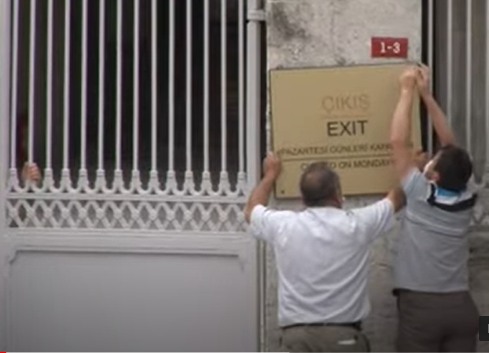 Όπως δείχνει βίντεο του Haber, εργαζόμενοι του δήμου προχωρούν στο κατέβασμα όλων των πινακίδων που αναγράφεται η ένδειξη «Μουσείο» για την Αγία Σοφία.