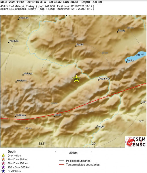 Η σεισμική δόνηση είχε επίκεντρο 45 χιλιόμετρα δυτικά της πόλης Μαλάτεια, πρωτεύουσα της ομώνυμης επαρχίας της ανατολικής Τουρκίας και ήταν επιφανειακός με βάθος μόλις πέντε χιλιομέτρων.