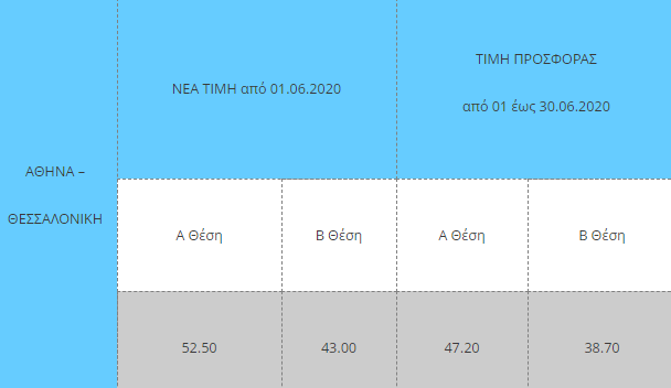 Σύμφωνα με ανακοίνωση της ΤΡΑΙΝΟΣΕ, από 01.06.2020 και έως 30.6.2020, στα δρομολόγια Αθήνας – Θεσσαλονίκης – Αθήνας εφαρμόζονται εκπτώσεις 10%, σε οποιοδήποτε κανονικό ή εκπτωτικό εισιτήριο ισχύει σήμερα, με δυνατότητα ταξιδίου έως 31/12/2020.