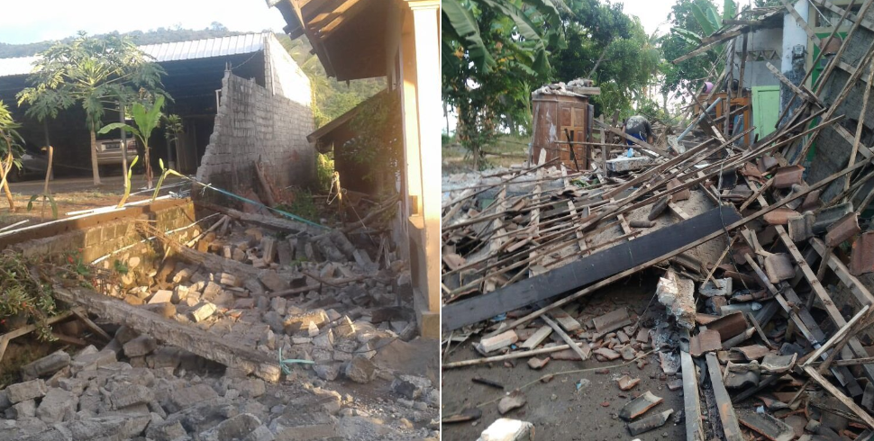 Ο Σουτόπο Πούρβο Νουγκρόχο, εκπρόσωπος της υπηρεσίας αντιμετώπισης καταστροφών, μεταφόρτωσε στη ροή του στον ιστότοπο κοινωνικής δικτύωσης Twitter φωτογραφίες που εικονίζουν σπίτια οι τοίχοι και οι οροφές των οποίων έχουν καταρρεύσει.