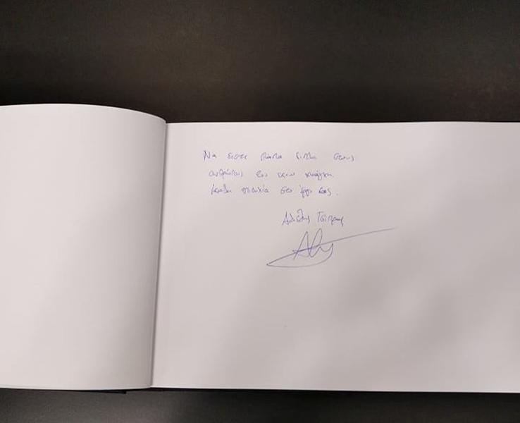 Στο σταντ του Ερυθρού Σταυρού και συγκεκριμένα σε βιβλίο ο Αλέξης Τσίπρας σημείωσε το εξής: