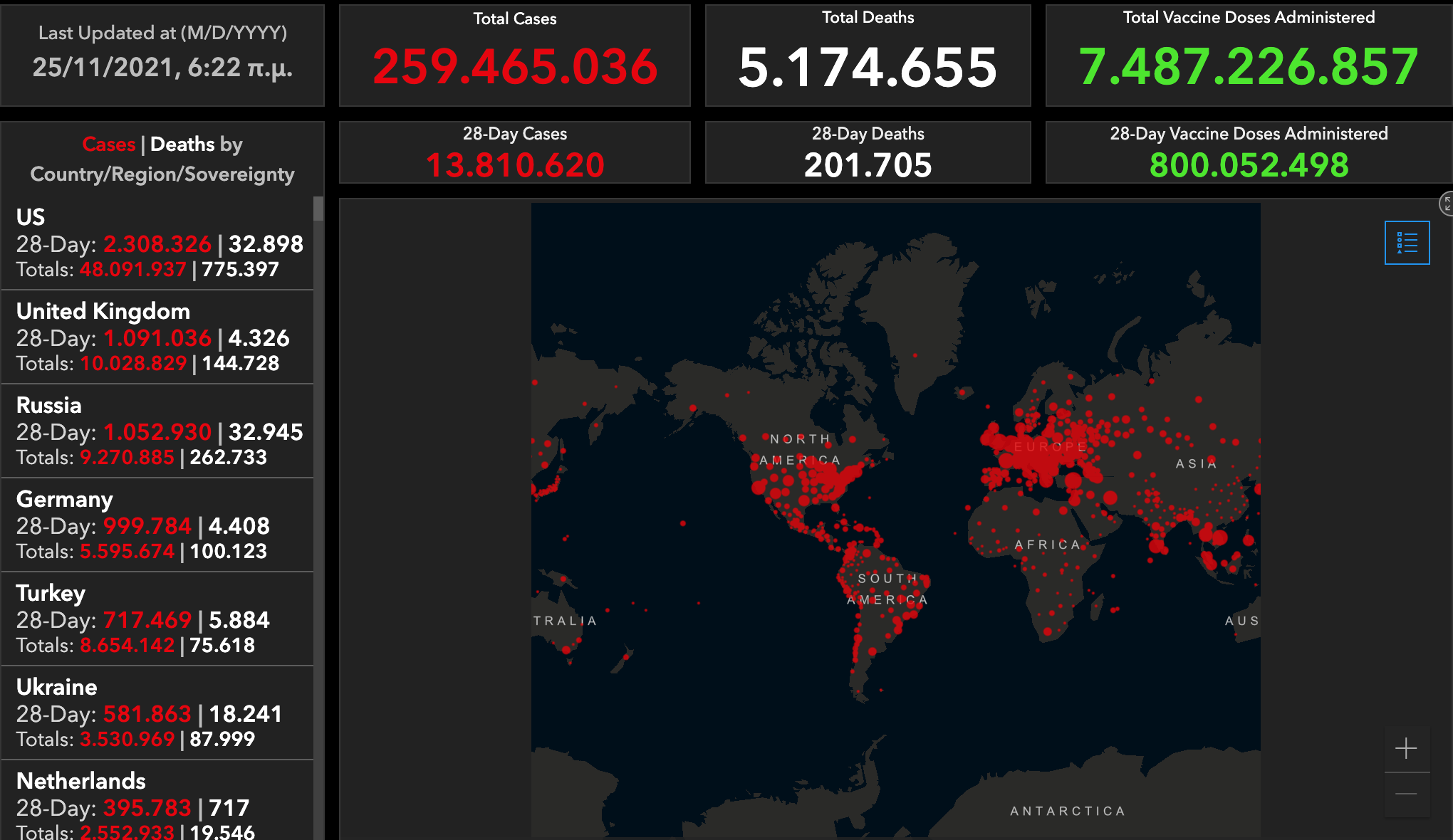 Η εικόνα της πανδημίας σήμερα στον κόσμο