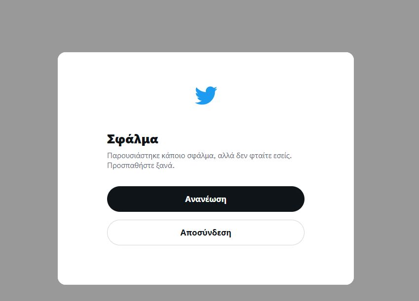 Το Twitter δεν επιτρέπει τη σύνδεση των χρηστών στην πλατφόρμα, εμφανίζοντας μήνυμα λάθους.