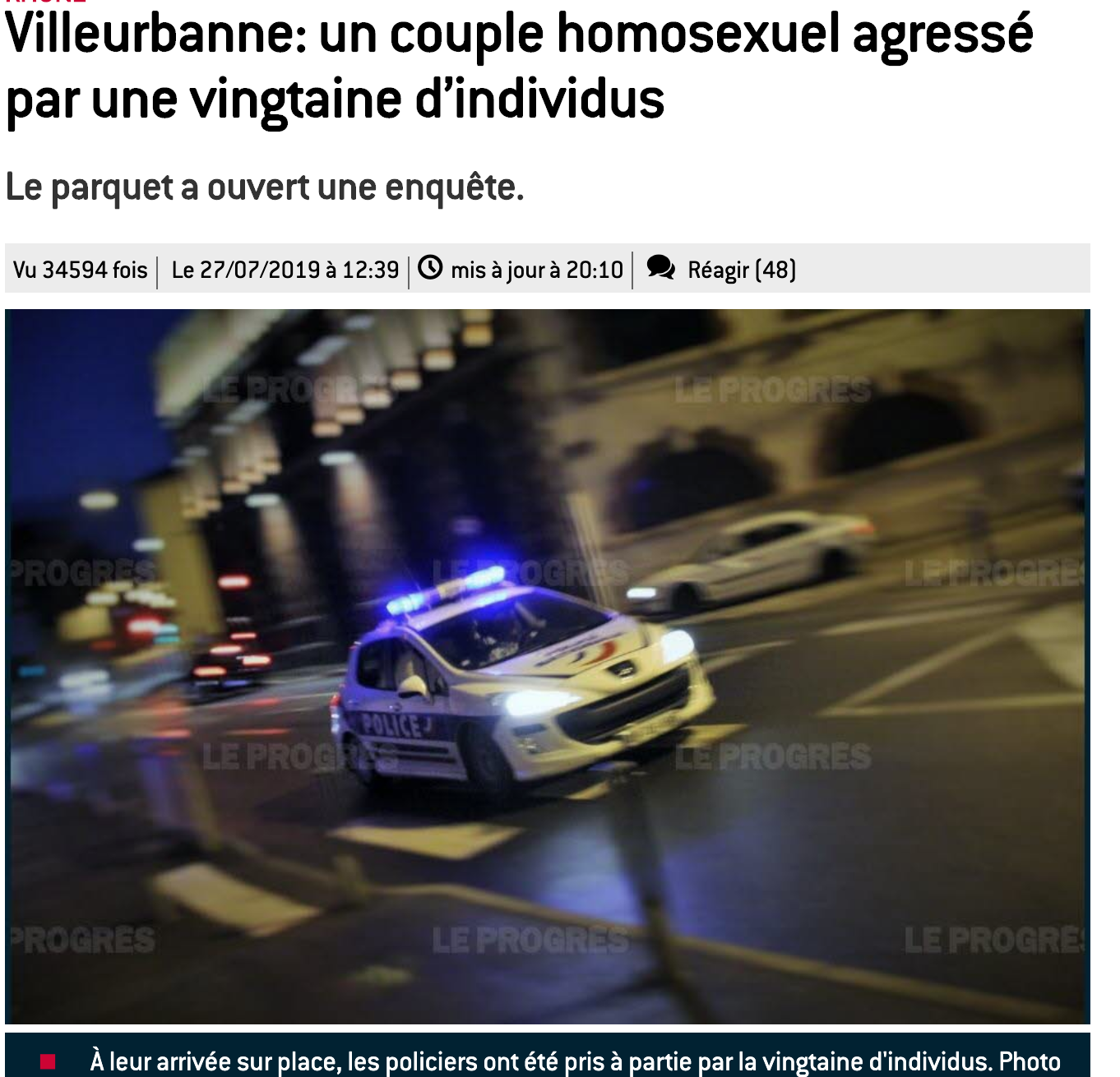 «Γύρω στις 01.30 το πρωί, δύο άνδρες, οι οποίοι αναγνωρίστηκαν ως ομοφυλόφιλοι, δέχθηκαν επίθεση από μια ομάδα 20 ατόμων, οι οποίοι εκτόξευαν ομοφοβικές ύβρεις προς το μέρος τους» και τους χτύπησαν, χρησιμοποιώντας σιδερένιες ράβδους, εξήγησε η εισαγγελία στο Γαλλικό Πρακτορείο, επιβεβαιώνοντας τις πληροφορίες της εφημερίδας Le Progres.