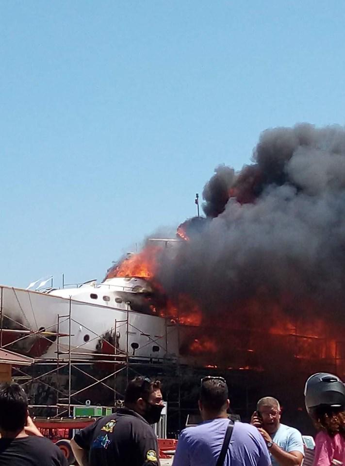 Ξέσπασε φωτιά σε μεγάλη θαλαμηγό εντός των εγκαταστάσεων του ναυπηγείου