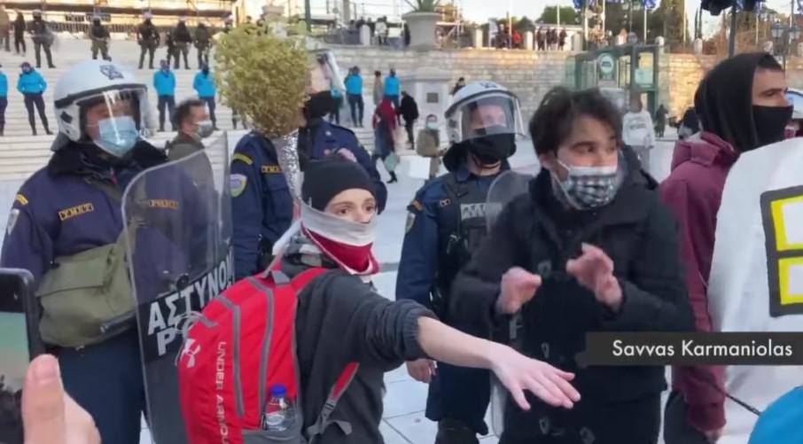 Τον γύρο του διαδικτύου ωστόσο κάνει ένα βίντεο όπου αστυνομικός των ΜΑΤ απωθεί με την ασπίδα του και μάλιστα πισώπλατα, με βία μια νεαρή φοιτήτρια που διαδηλώνει. Όπως φαίνεται και στο βίντεο ενώ ένας συνάδελφός του προσπαθεί να τη διώξει ήρεμα αρχικά, αυτός του τινάζει το χέρι και της επιτίθεται με την ασπίδα του.