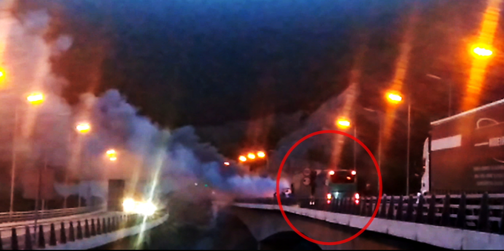 Την ώρα που το λεωφορείο φλεγόταν χθες το βράδυ στα τούνελ της Εγνατίας.