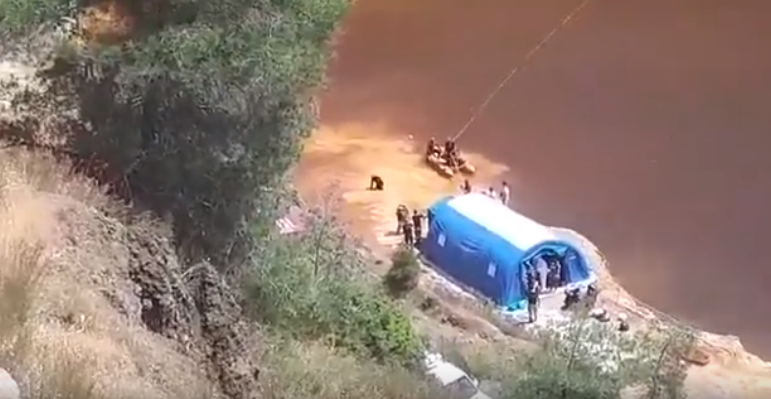 Πριν από λίγη ώρα, στη λίμνη μπήκε λέμβος, όμως, επέστρεψε στην όχθη χωρίς να ανασύρει τα αντικείμενα.