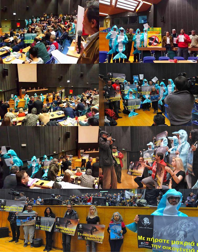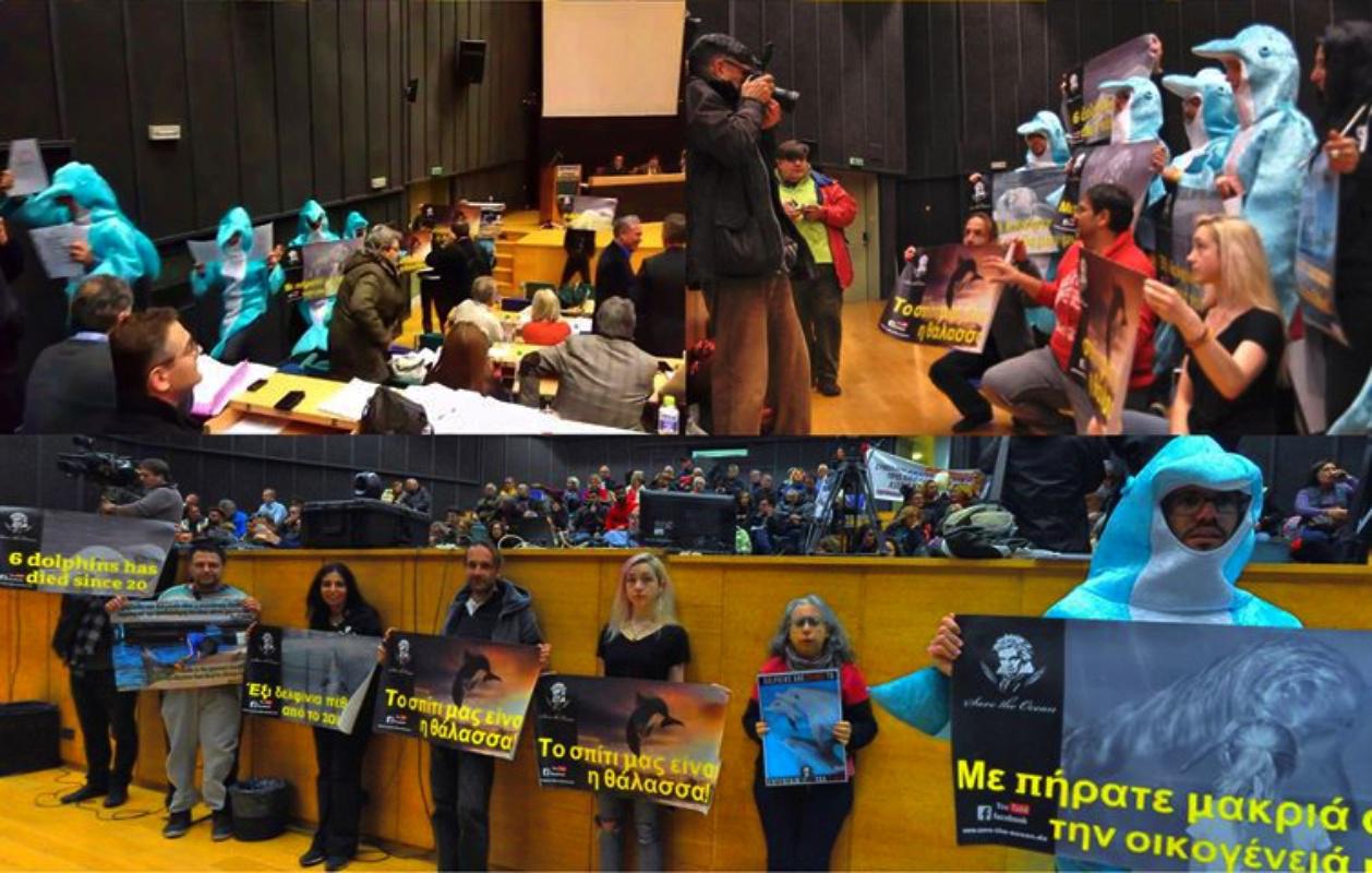 Ακτιβιστές της «Οικολογικής συμμαχίας» εισέβαλαν ντυμένοι δελφίνια στην χθεσινή συνέλευση στο Περιφερειακό συμβούλιο Αττικής, διαμαρτυρόμενοι για τα δελφίνια στο Αττικό ζωολογικό πάρκο.