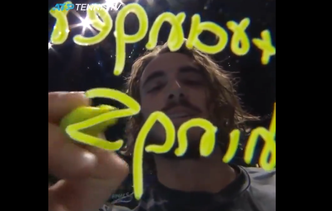 Το δικό του “αυτόγραφο” έδωσε ο Στέφανος Τσιτσιπάς σε μία κάμερα μετά τη λήξη του σημερινού αγώνα.