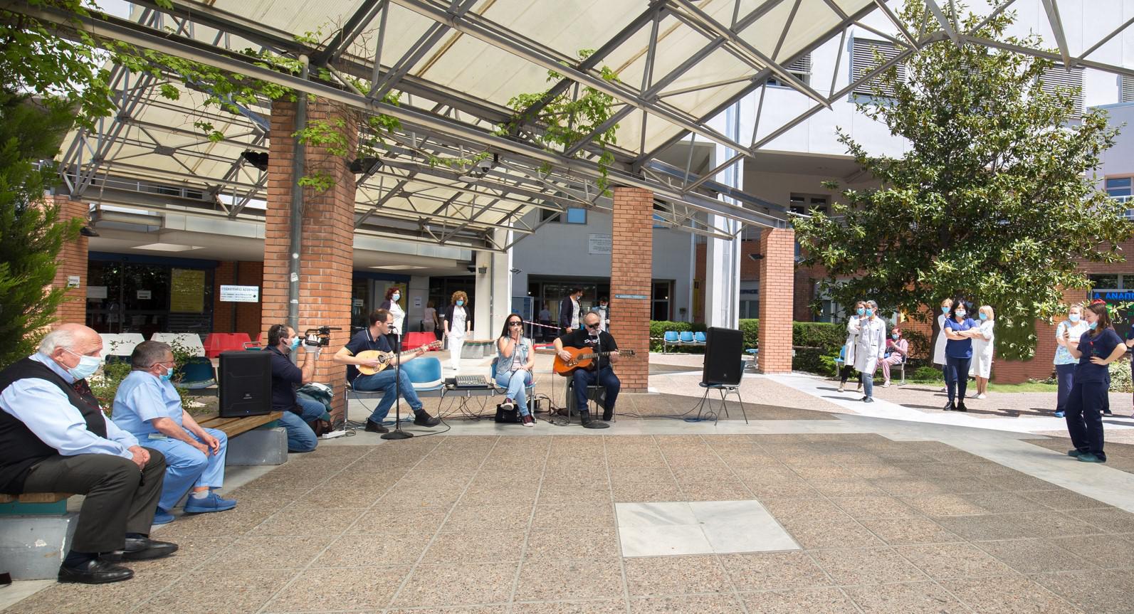 Τραγουδώντας και παίζοντας ρεμπέτικα, ο γνωστός ρεμπέτης Αγάθωνας και η κομπανία του εξέφρασαν τις ευχαριστίες και την ευγνωμοσύνη τους στους γιατρούς, τους νοσηλευτές και το προσωπικό του νοσοκομείου Παπαγεωργίου.