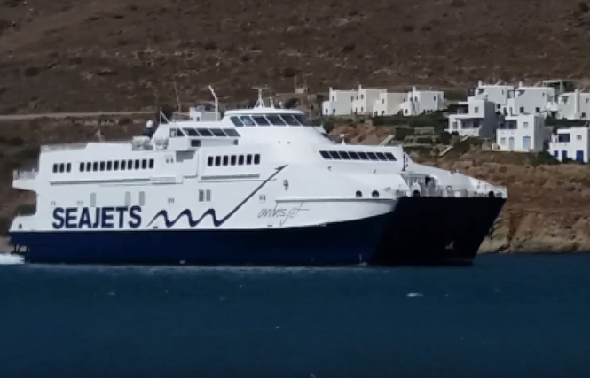 Απαγορεύθηκε ο απόπλους του επιβατηγού οχηματαγωγού πλοίου τύπου καταμαράν “ANDROS JET” στο λιμάνι της Σύρου, λόγω θραύσης του τμήματος του καταπέλτη.