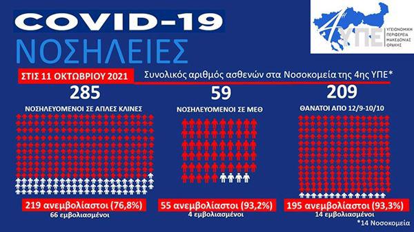 209 είναι συνολικά οι νεκροί τον τελευταίο μήνα (12/9 – 10/10) από κορονοϊό στα νοσοκομεία της 4ης ΥΠΕ.