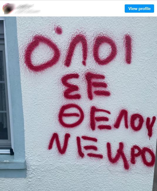 Στην ανάρτησή του αναφέρει τα εξής: «Πριν μια ώρα ξύπνησα και σε εξωτερικό τοίχο του σπιτιού μου αντίκρισα αυτό. Δεν ξέρω τι να πω πραγματικά, όταν αποφάσισα να μιλήσω δημόσια για όλα όσα μου έχουν συμβεί δεν πίστευα ότι θα μπορούσε να γίνει κάτι τέτοιο. Δεν μετανιώνω για τίποτα απ όλα όσα είπα και έκανα. Εμένα δεν με σέβονται, ας σεβαστούν τουλάχιστον την οικογένειά μου. Μετά απ αυτό το να τοποθετηθούν κάμερες ασφαλείας σε εξωτερικούς χώρους του σπιτιού είναι αναπόφευκτο».
