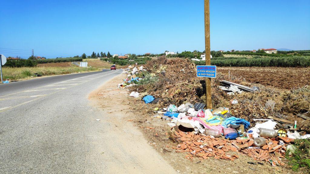 Eνδεικτικό φυσικά είναι το γεγονός πως τα σκουπίδια, συγκεντρώνονται άτυπα ακριβώς κάτω από πινακίδα που απαγορεύει την ρίψη σκουπιδιών. Είναι μια εικόνα που δεν θα έπρεπε να υπάρχει.