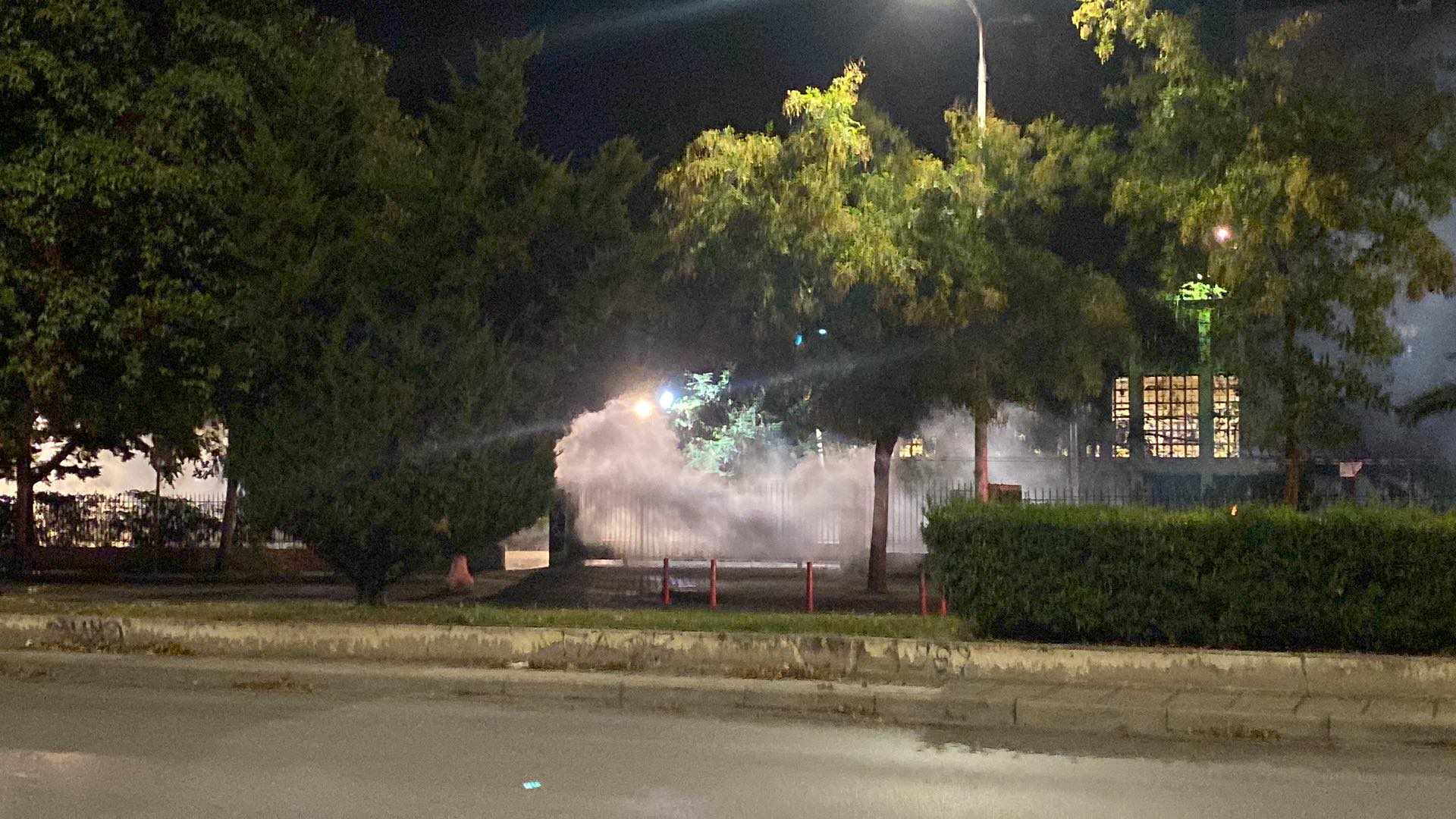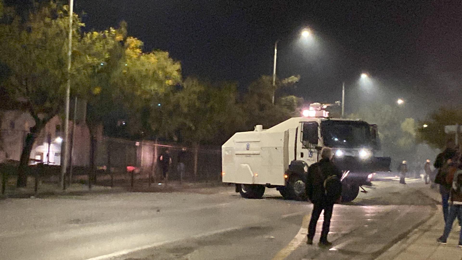 Ρίψη δακρυγόνων από αστυνομία και συνεχόμενες ρίψεις μολότοφ. H αύρα της αστυνομίας επιχειρεί διαρκείς ρίψεις νερού.