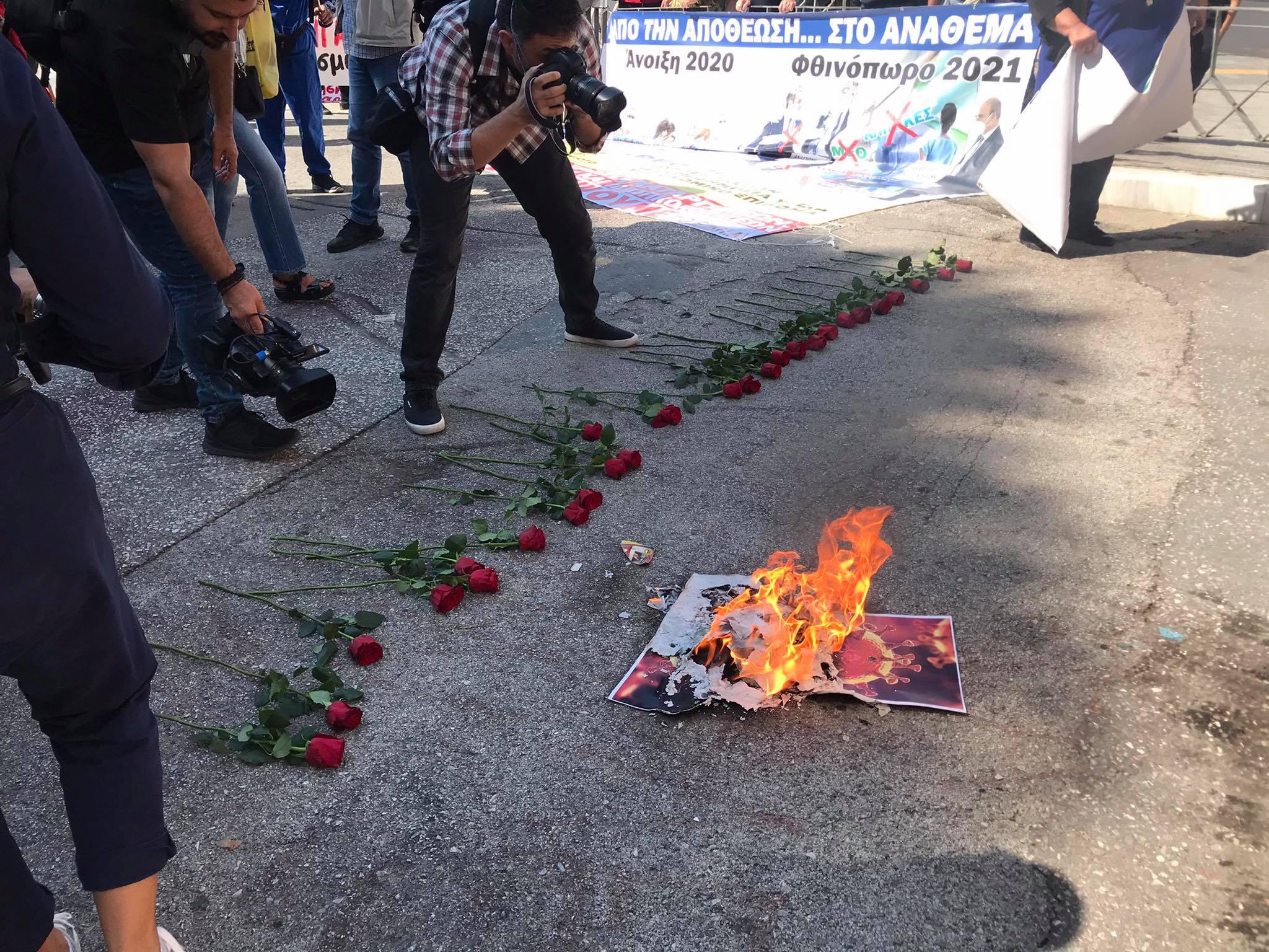 Με κύριο αίτημα τους την κατάληξη του υποχρεωτικού εμβολιασμού στον κλάδο τους και αντιδρώντας στις αναστολές συμβάσεων για τους ανεμβολίαστους συναδέλφους τους οι εργαζόμενοι στα νοσοκομεία της πόλης σε μια συμβολική κίνηση έκαψαν τον ιό και έκοψαν τούρτα κέρασμα για τον Πρωθυπουργό.