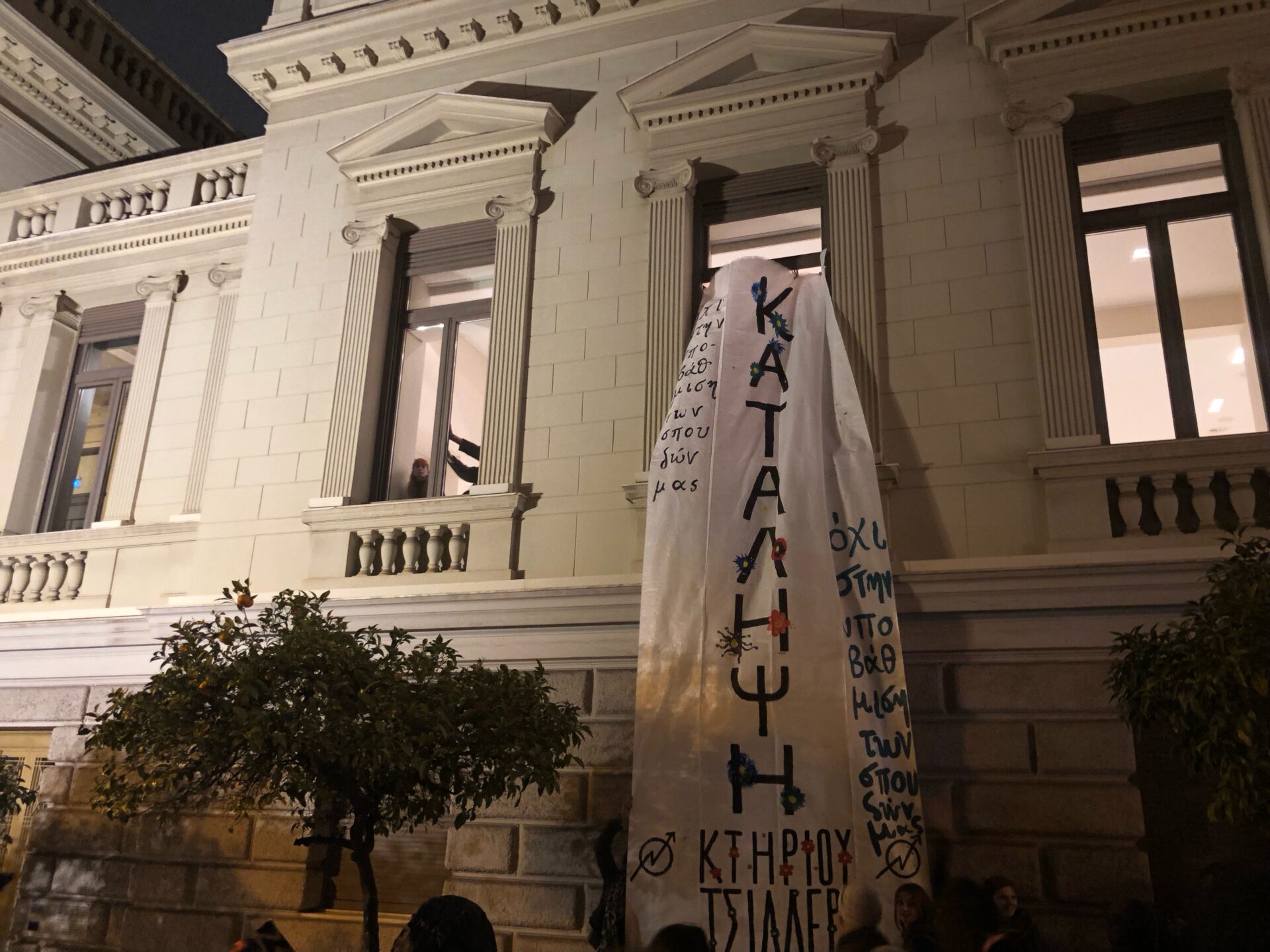 «Η Κατάληψη της Δραματικής Σχολής του Εθνικού Θεάτρου χαιρετίζει την κατάληψη του κτιρίου του Θεάτρου Τσίλερ που είναι γεγονός από απόψε, 4 Φεβρουαρίου 2023. Οι σπουδαστές/-τριες των Δραματικών Σχολών παίρνουμε στα χέρια μας την τύχη και το μέλλον μας και αντιστεκόμαστε με κάθε τρόπο στην θεσμική απαξίωση που υποβαθμίζει την εκπαιδευτική και καλλιτεχνική μας πορεία».