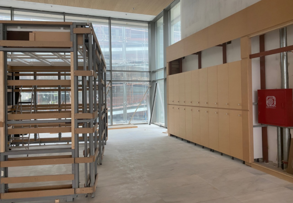 Τοποθετούνται τα καθίσματα στο αμφιθέατρο, το οποίο είναι πλήρως έτοιμο σε ό,τι αφορά τα τεχνολογικά μέσα.