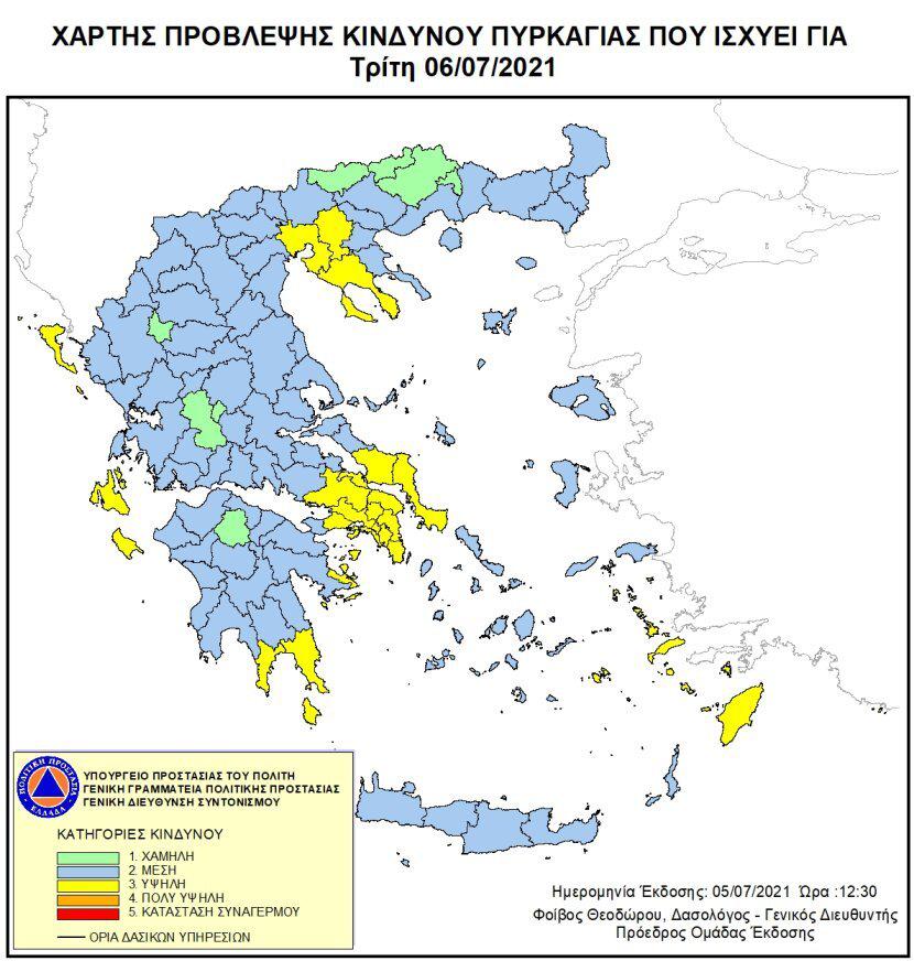 Υψηλός κίνδυνος (κατηγορία 3) εκδήλωσης πυρκαγιάς υπάρχει σήμερα στους νομούς Θεσσαλονίκης και Χαλκιδικής. Η Γενική Γραμματεία Πολιτικής Προστασίας (www.civilprotection.gr) του Υπουργείου Προστασίας του Πολίτη έχει ενημερώσει τις αρμόδιες υπηρεσιακά εμπλεκόμενες κρατικές υπηρεσίες, καθώς και τις Περιφέρειες και τους Δήμους των ανωτέρω περιοχών, ώστε να βρίσκονται σε αυξημένη ετοιμότητα πολιτικής προστασίας προκειμένου να αντιμετωπίσουν άμεσα τυχόν επεισόδια πυρκαγιών.